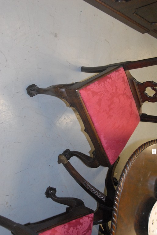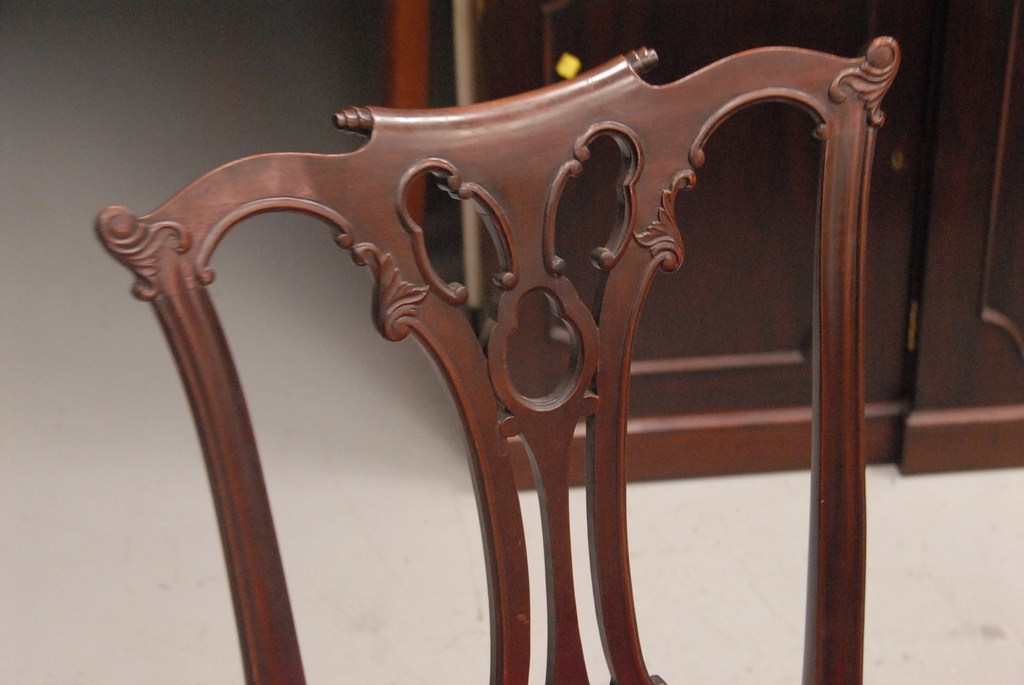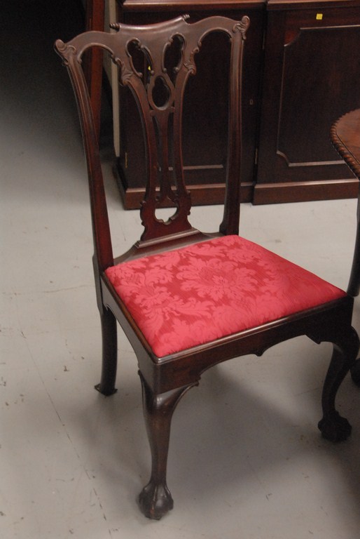 Lot 385: Set of five Margolis mahogany Chippendale style side chairs Gillingham style pierced back and slip seats on cabriole legs ending in …