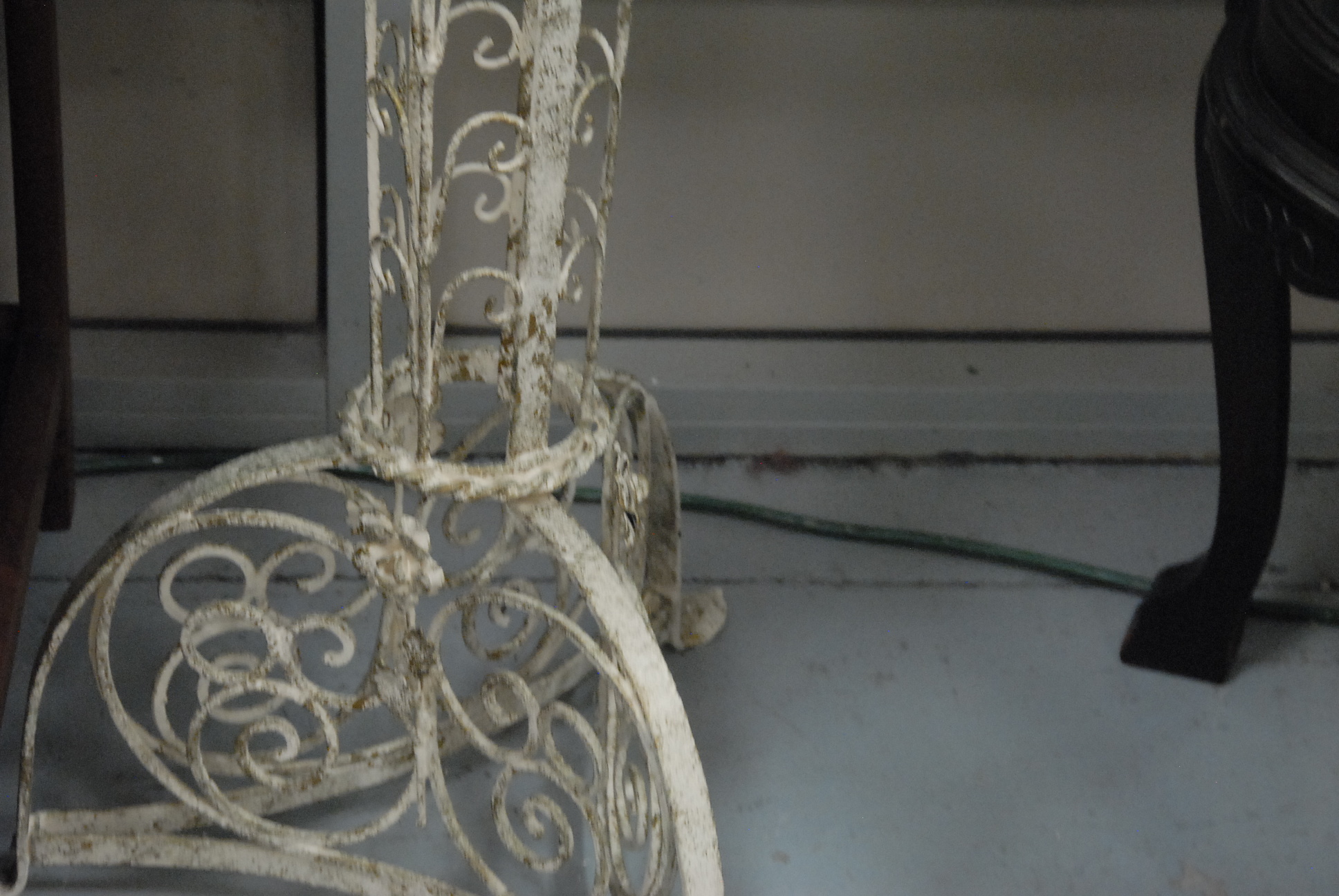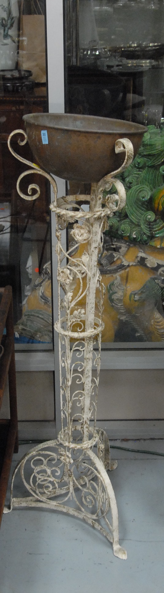 Tall iron plant stand with copper pot.