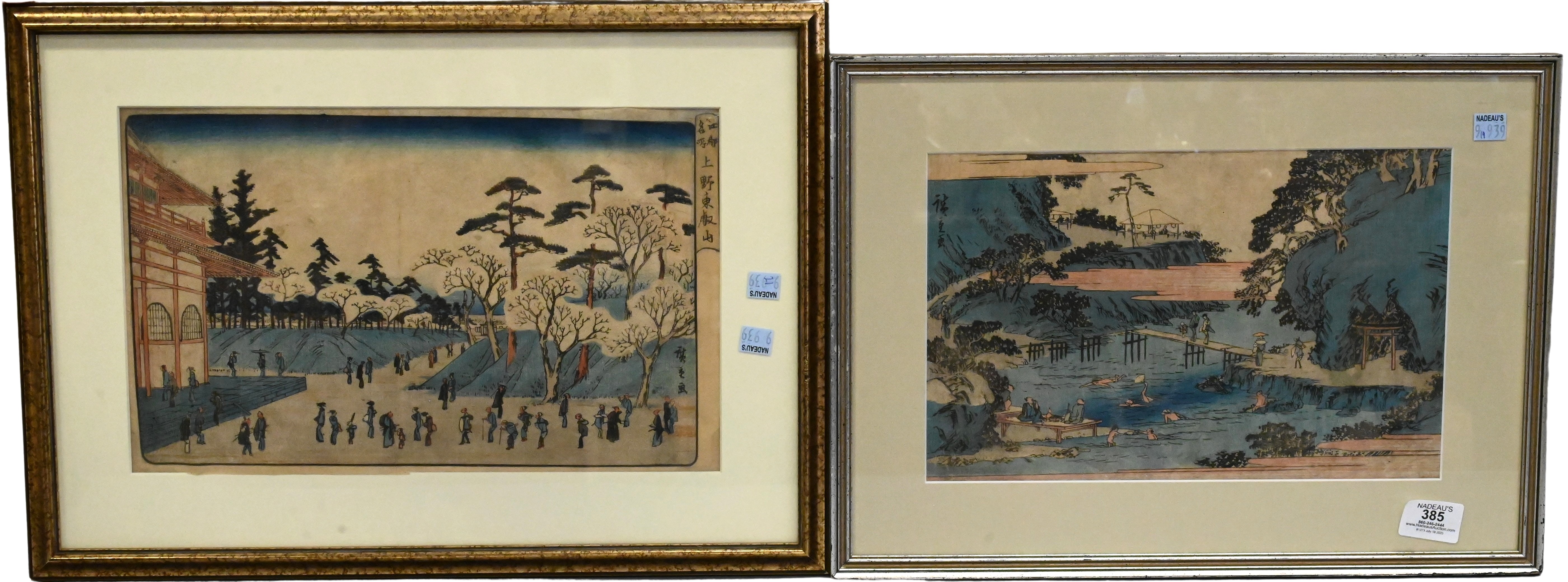 “Waterfall River at Oji” and “Temple Viewing During Springtime”