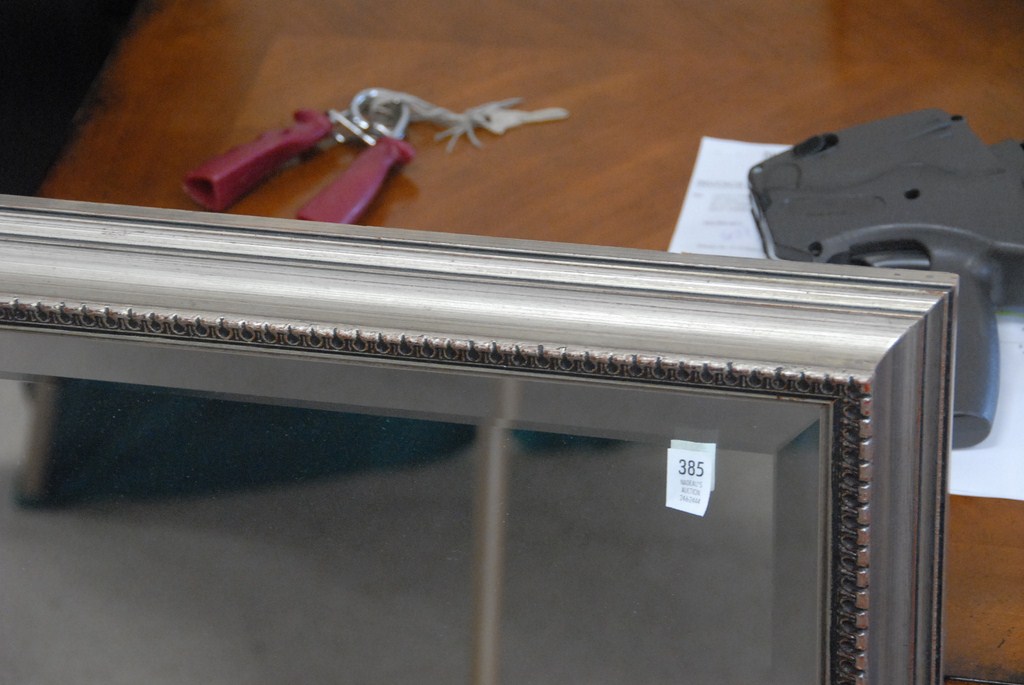 Lot 385: Two mirrors oval gold framed mirror and rectangular silver framed bevel glass mirror.