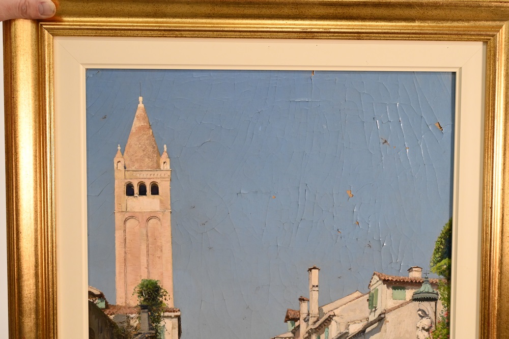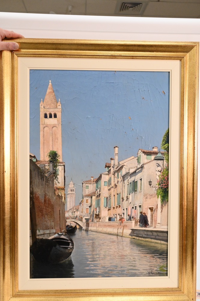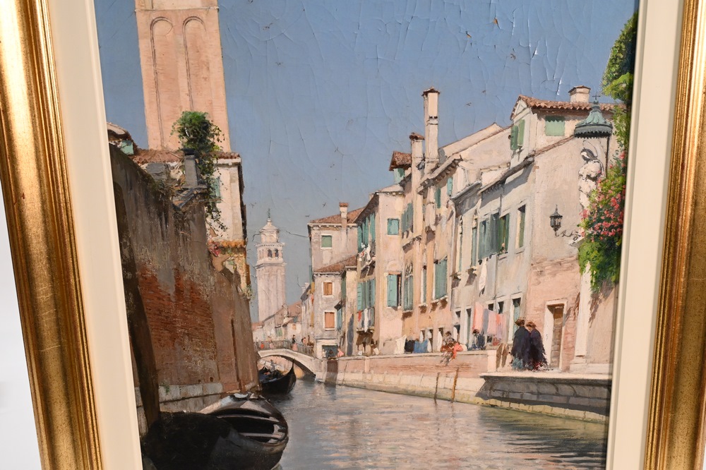 Lot 385: Vincenzo Caprile (1856 – 1936), Rio San Barnaba, Venezia, Venice Canal, oil on canvas, signed lower right V. Caprile, Sotheby’s labe…