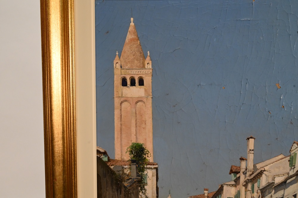 Vincenzo Caprile (1856 – 1936), Rio San Barnaba, Venezia, Venice Canal, oil on canvas, signed lower right V. Caprile, Sotheby’s label on back, lot #15, Milano, December 4, 2006. Sold 19,000 euros, estimate 25,000 – 35,000 euros, 30″ x 25 1/2″.