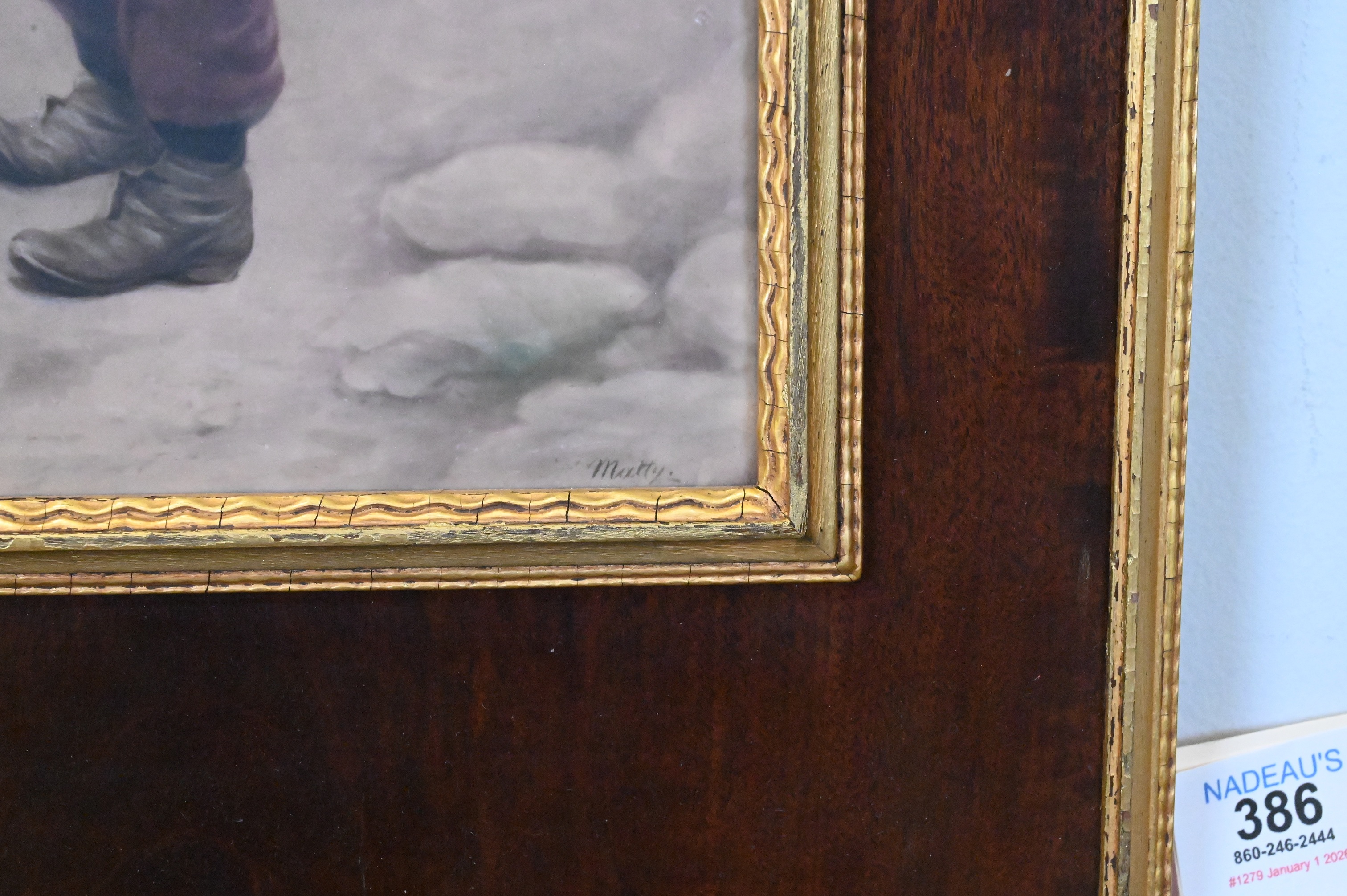 This condition report is provided as a courtesy and reflects our opinion only. Bidders should conduct their own due diligence. The absence of a report does not imply the lot is free of issues. Assessments are based on visual inspection; unless noted, items have not been examined under UV light, movements and electrical components have not been tested, and artworks are generally not removed from frames. We are not professional conservators, and this report is not a comprehensive condition evaluation. Images provided form part of the condition report and should be reviewed carefully. All sales are final. For in-person inspection, please call 860-246-2444 or email info@nadeausauction.com.