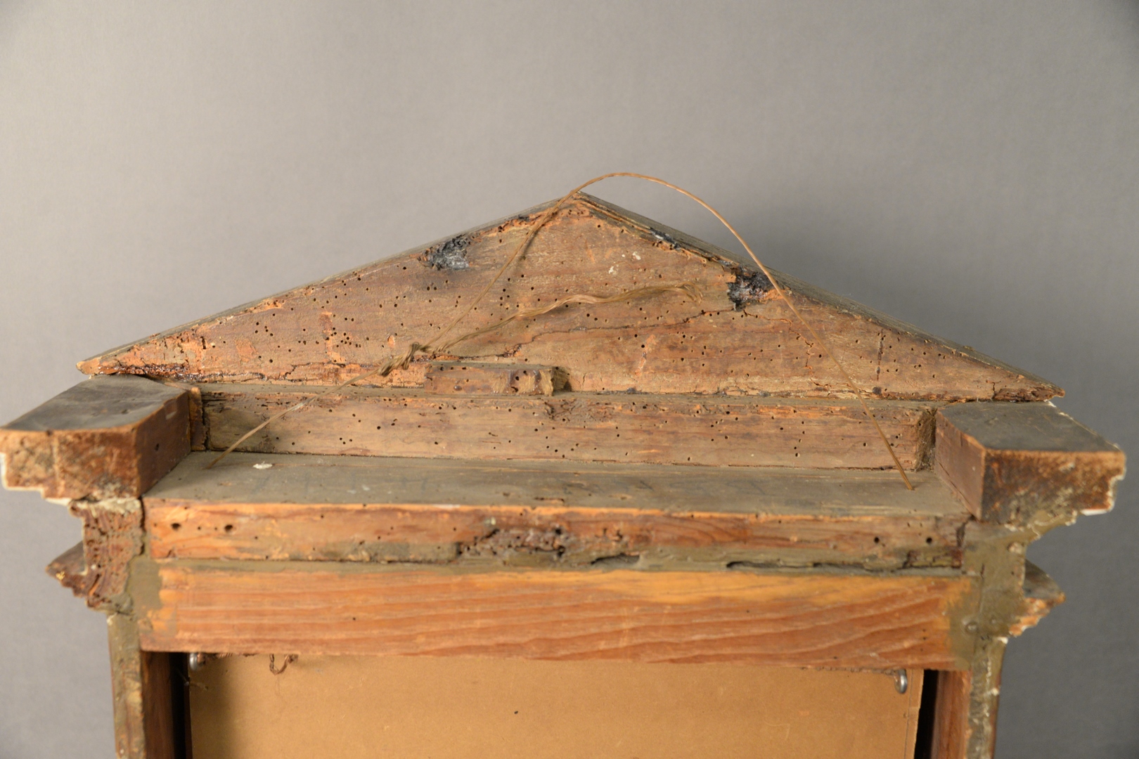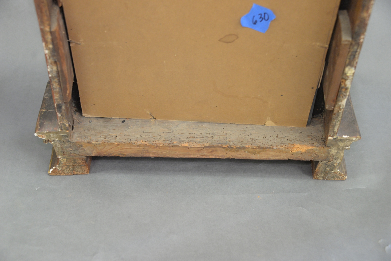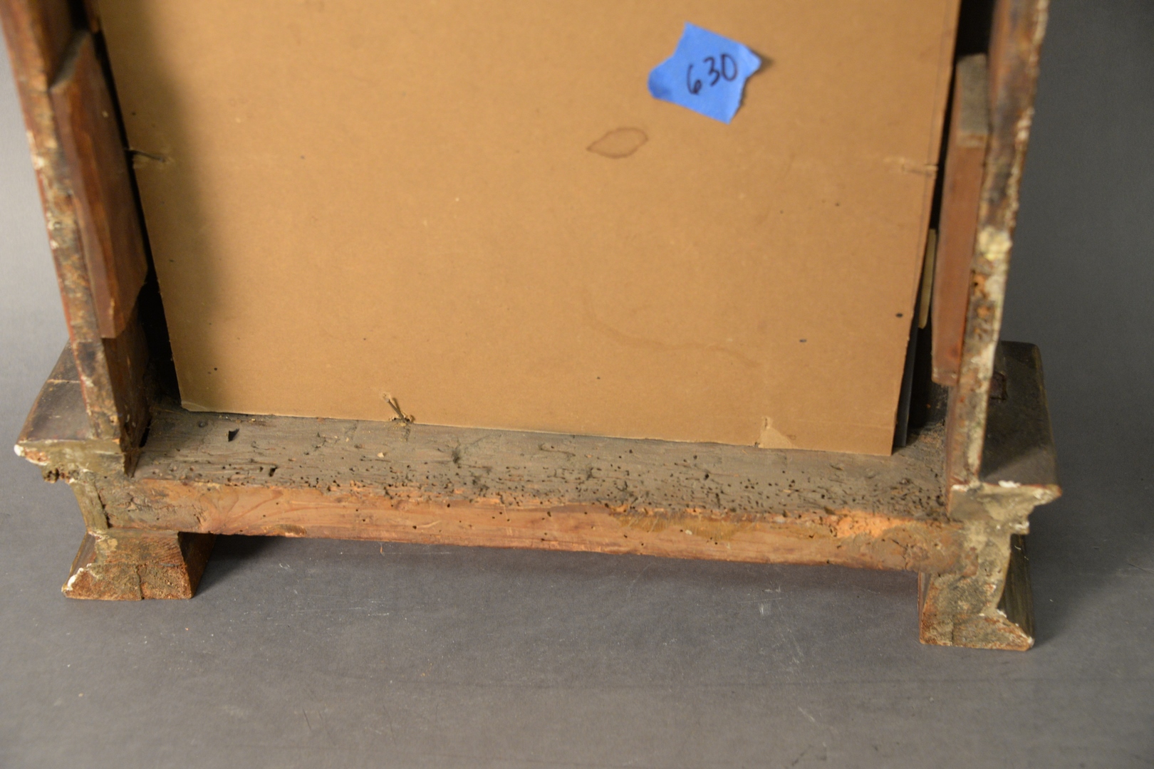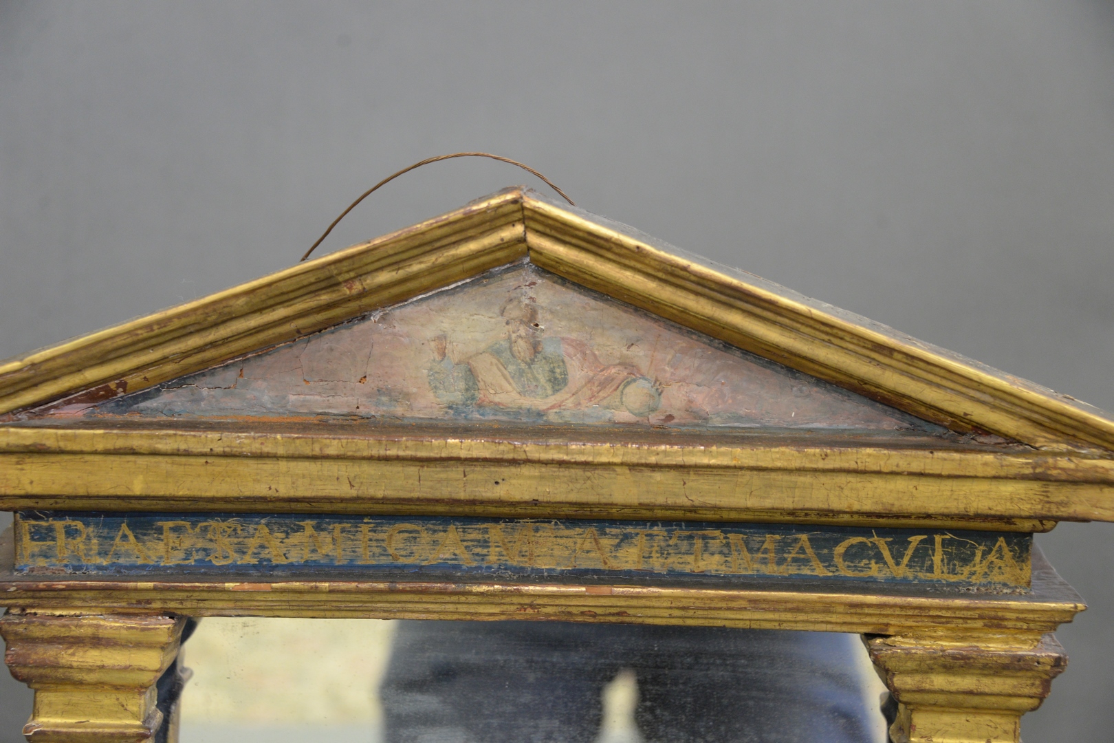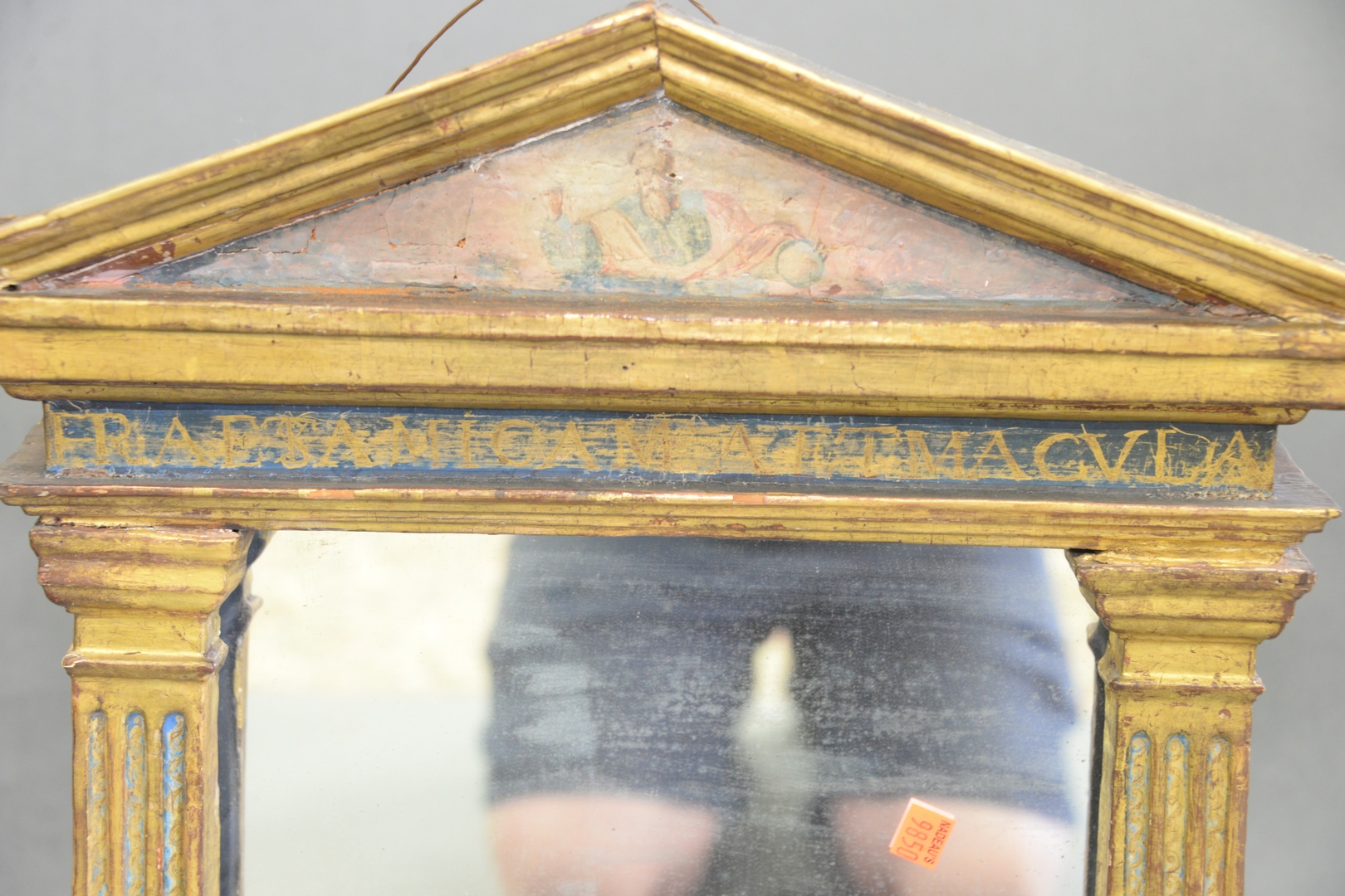 Lot 386: Classic Italian Tabernacle Mirror, gilt wood and jesso frame, having painted crest, height 30 1/2 inches, width 19 1/2 inches.