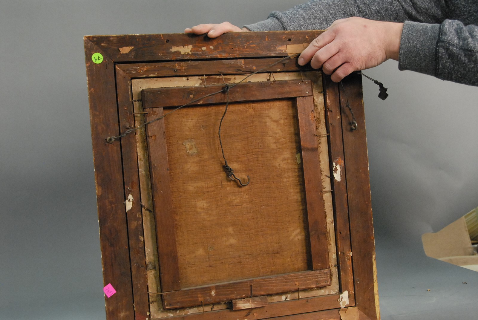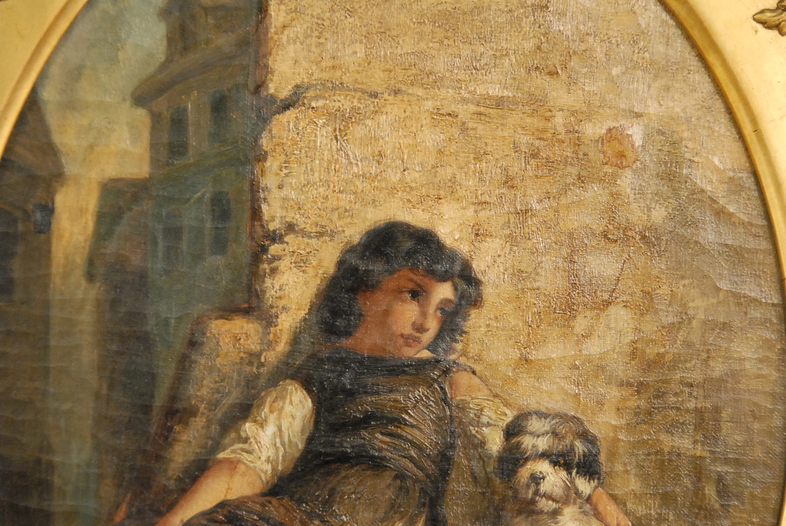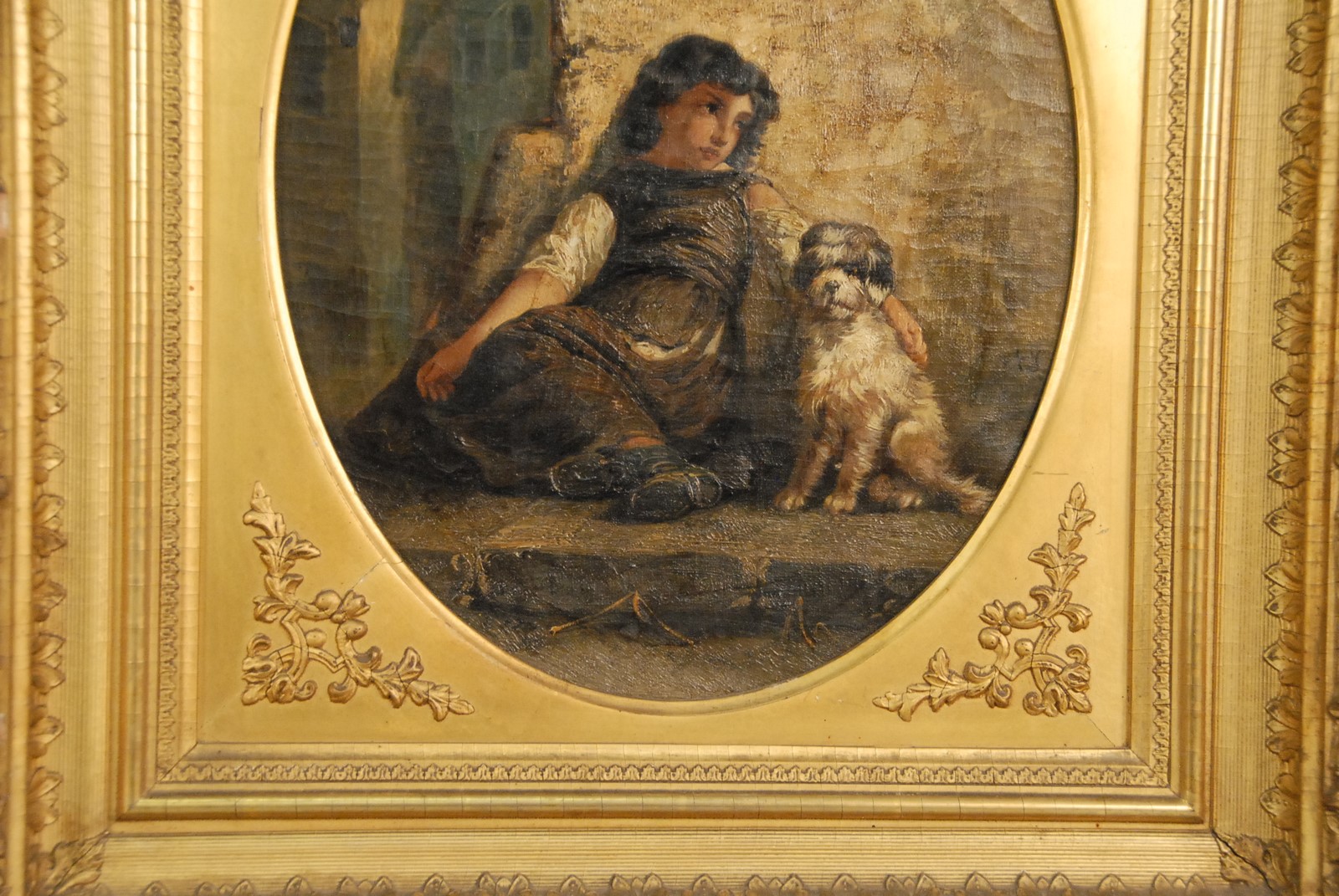 Continental YOUNG GIRL WITH DOG oil on canvas initialed center right A. L. 16 x 13