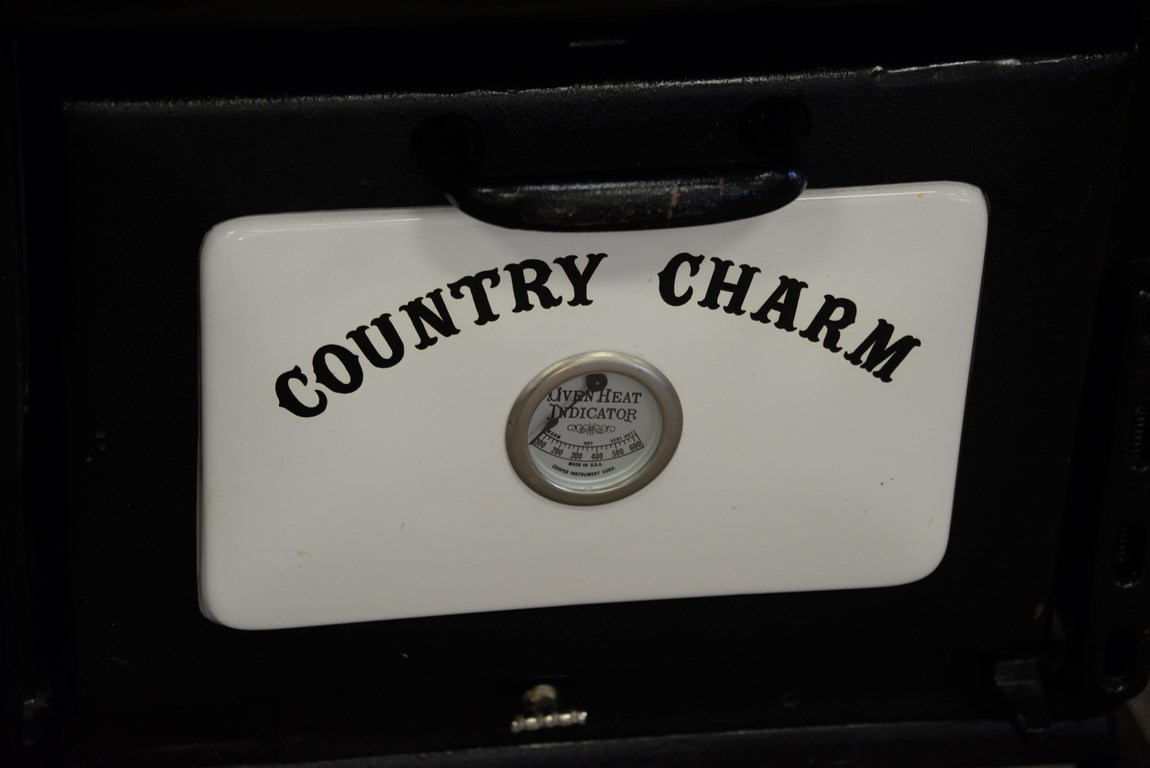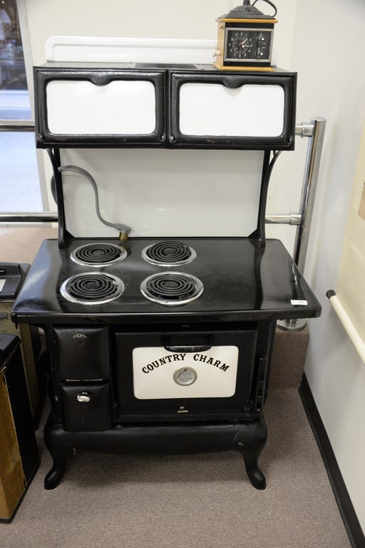 Lot 386: Country Charm Webster cast iron electric stove and oven, model R59. ht. 58 in. wd. 36 in. dp. 21 1/2 in.
