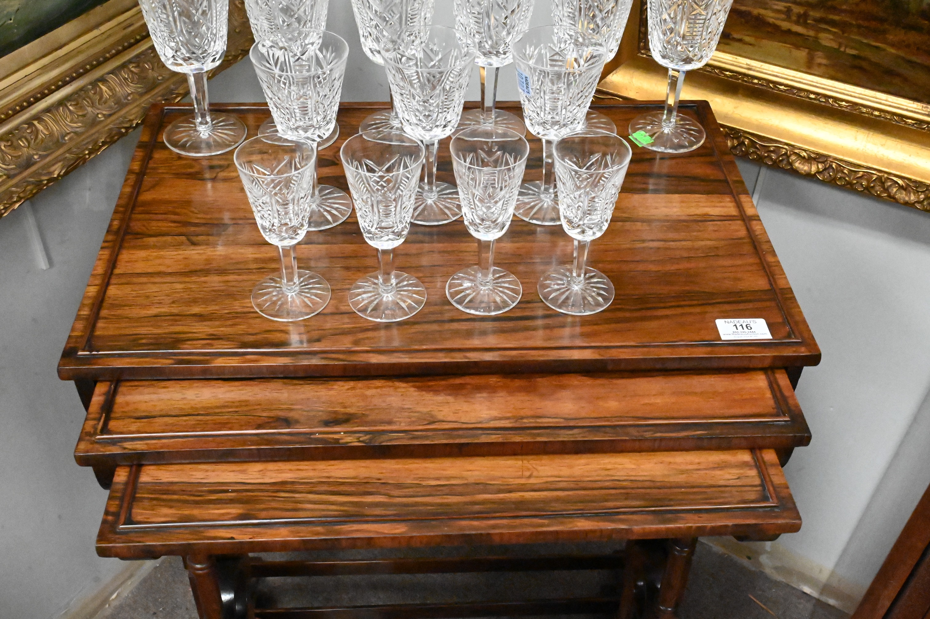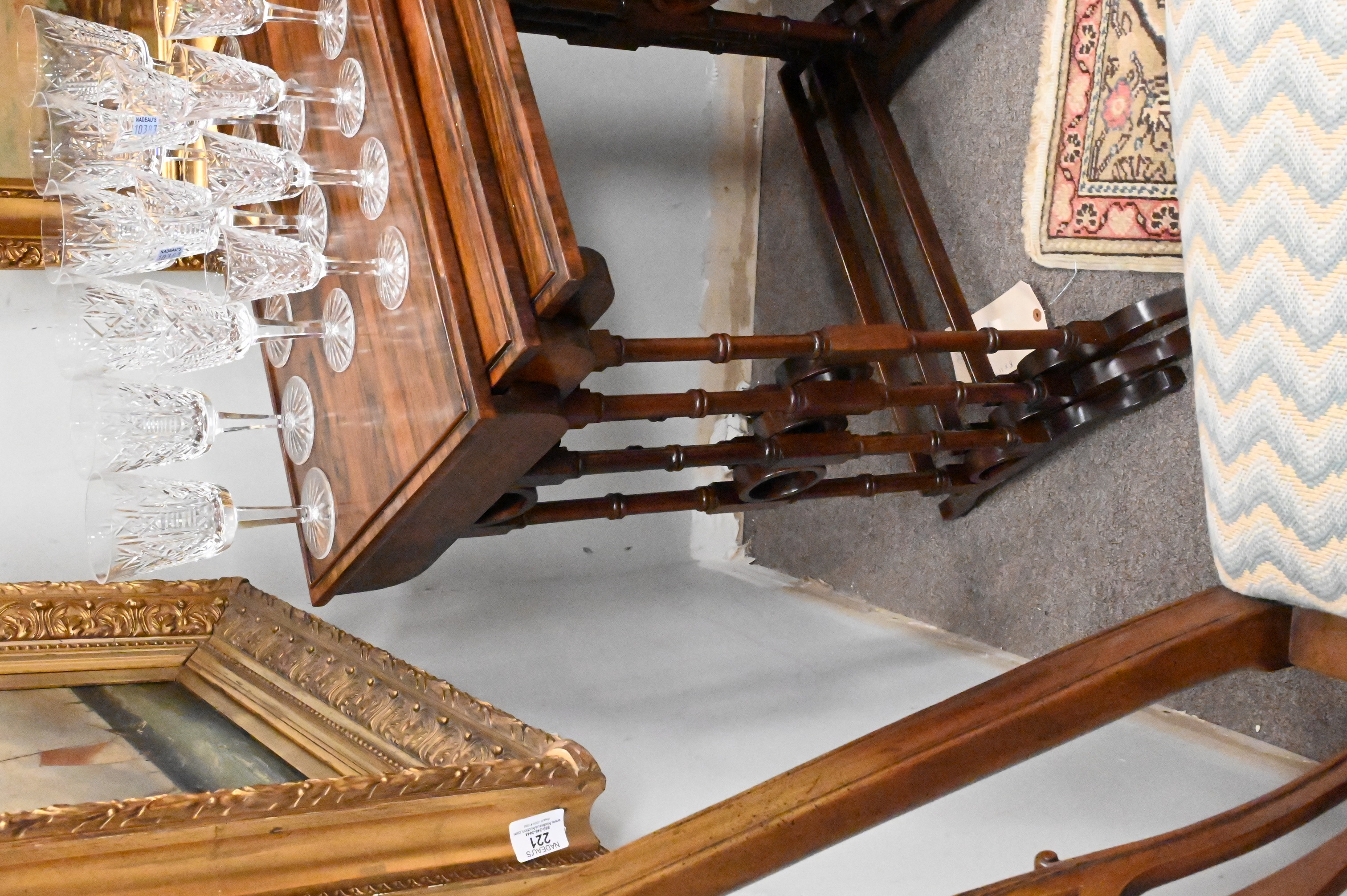 Lot 386: Nest of Three Rosewood Stacking Tables on Bamboo Turned Legs