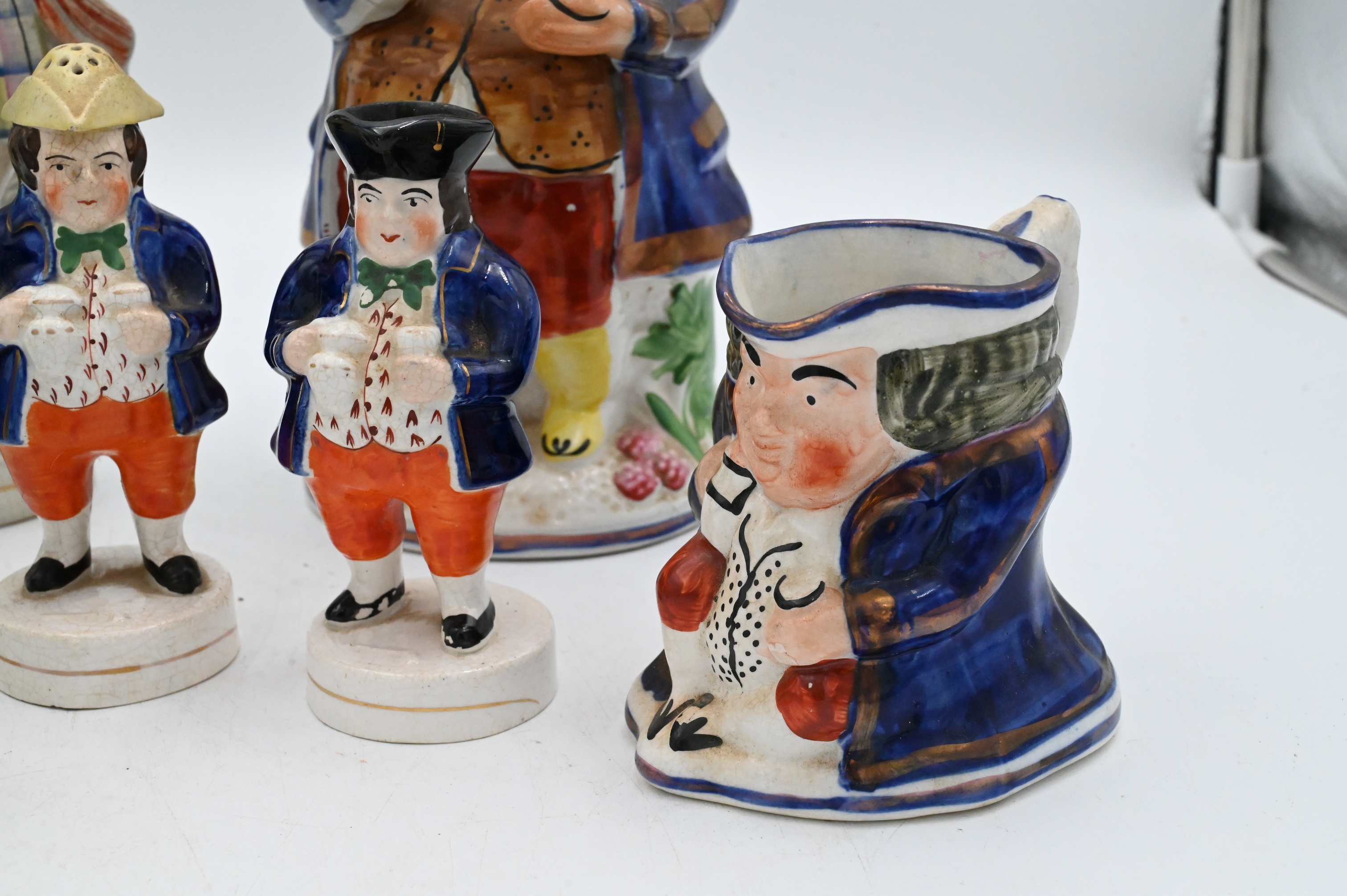 Nine Piece Group of Figural Toby Jugs and Figurines