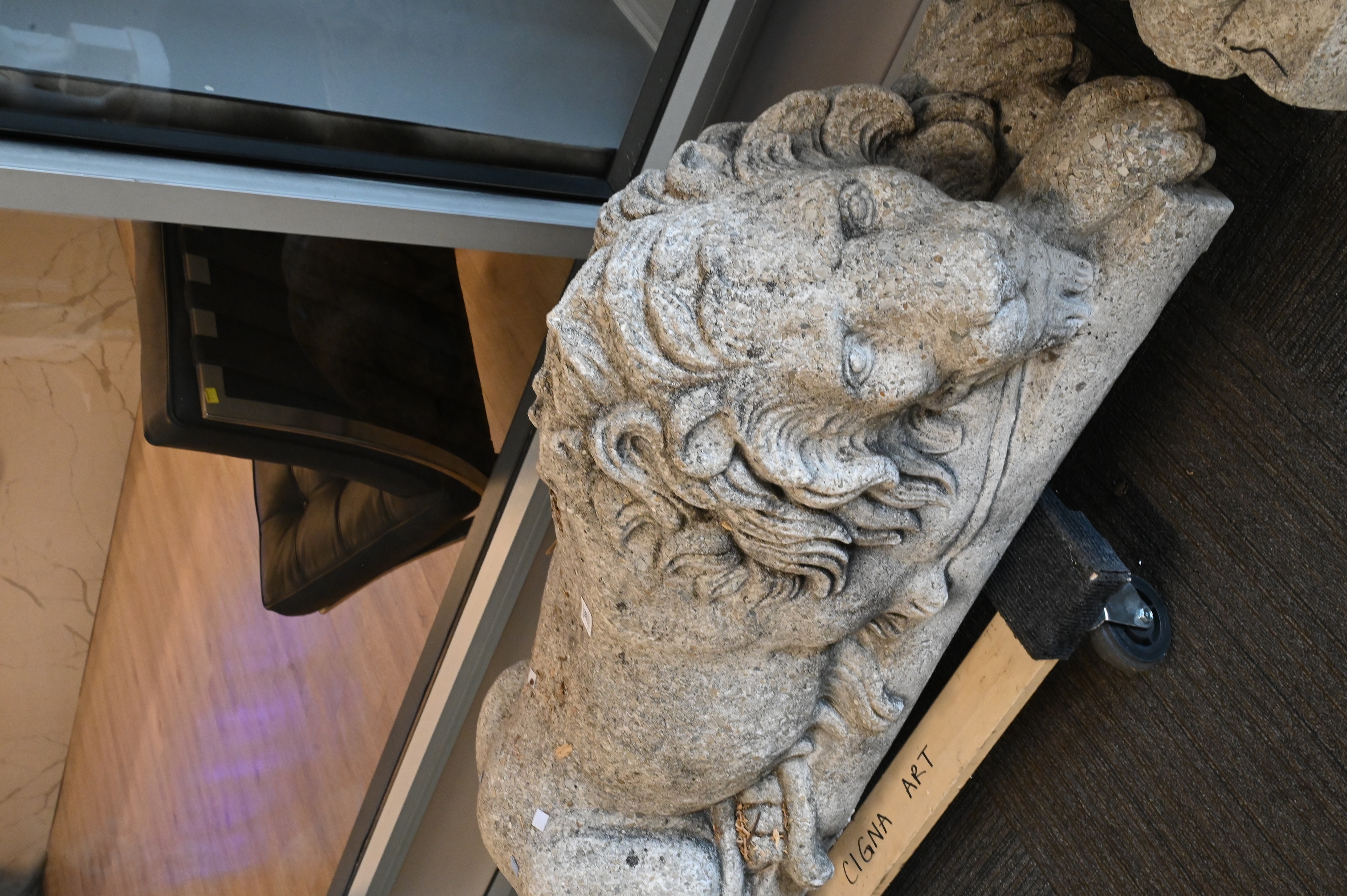 Lot 386: Pair of Cast Concrete Recumbent Lions