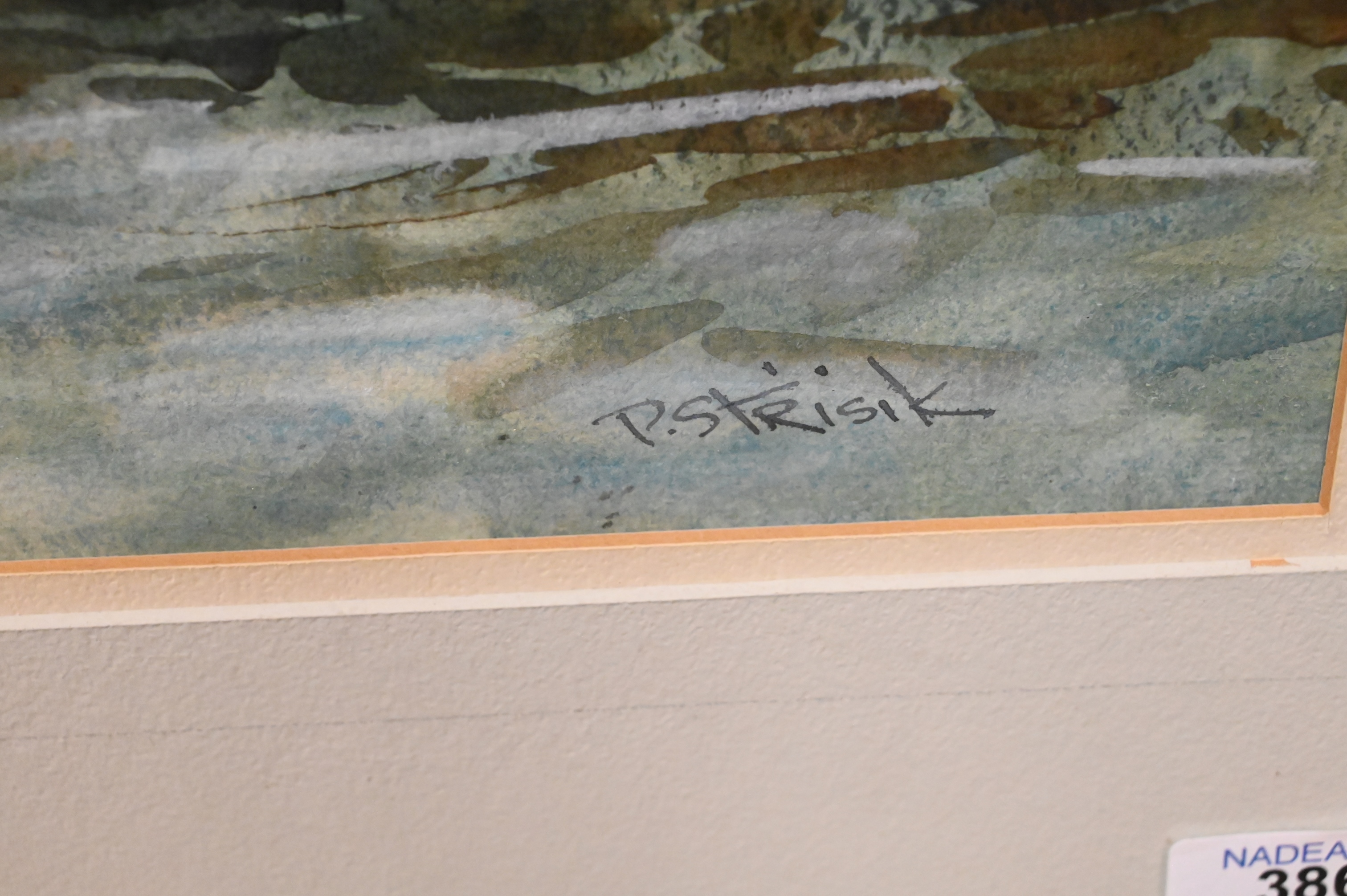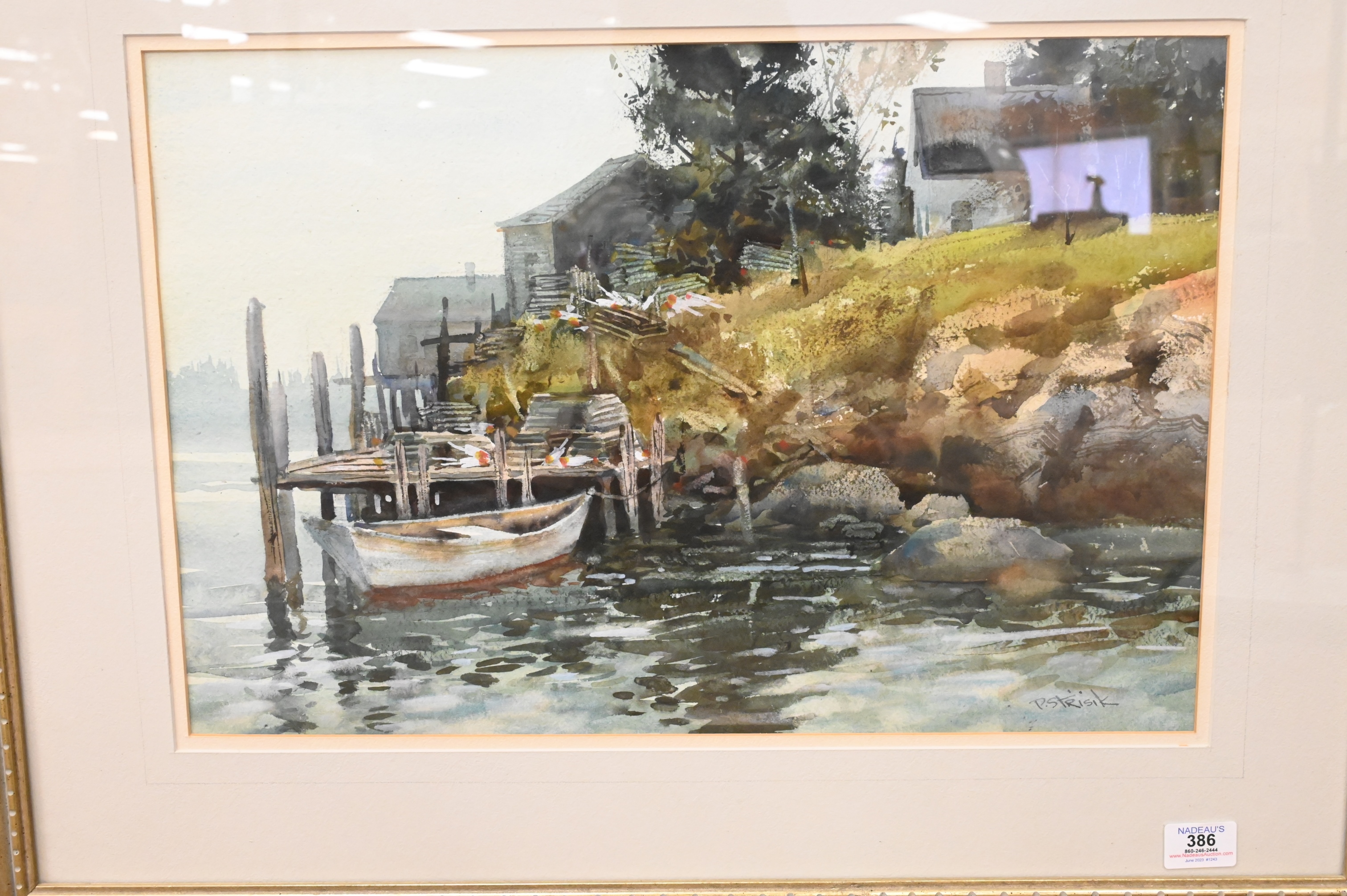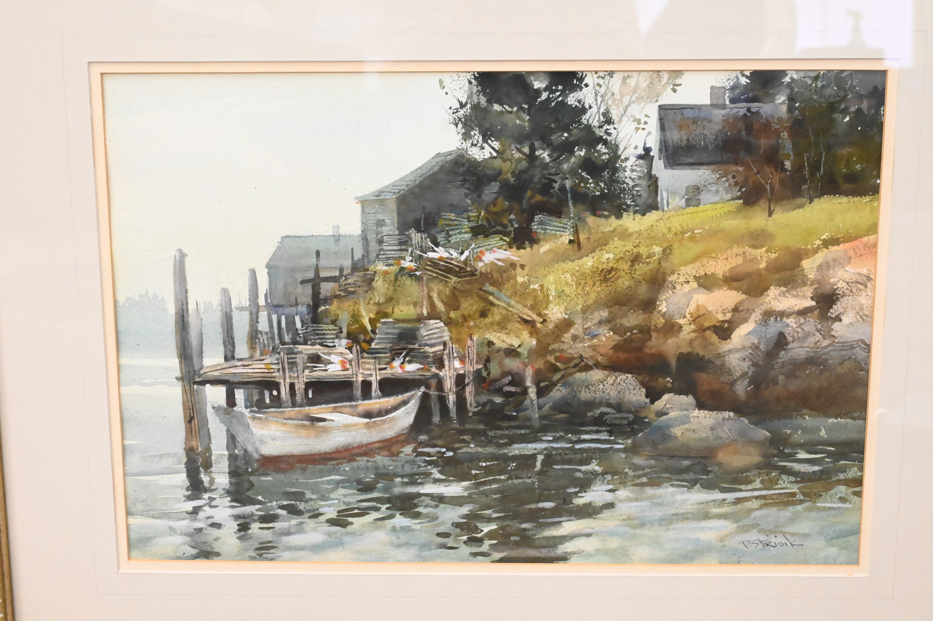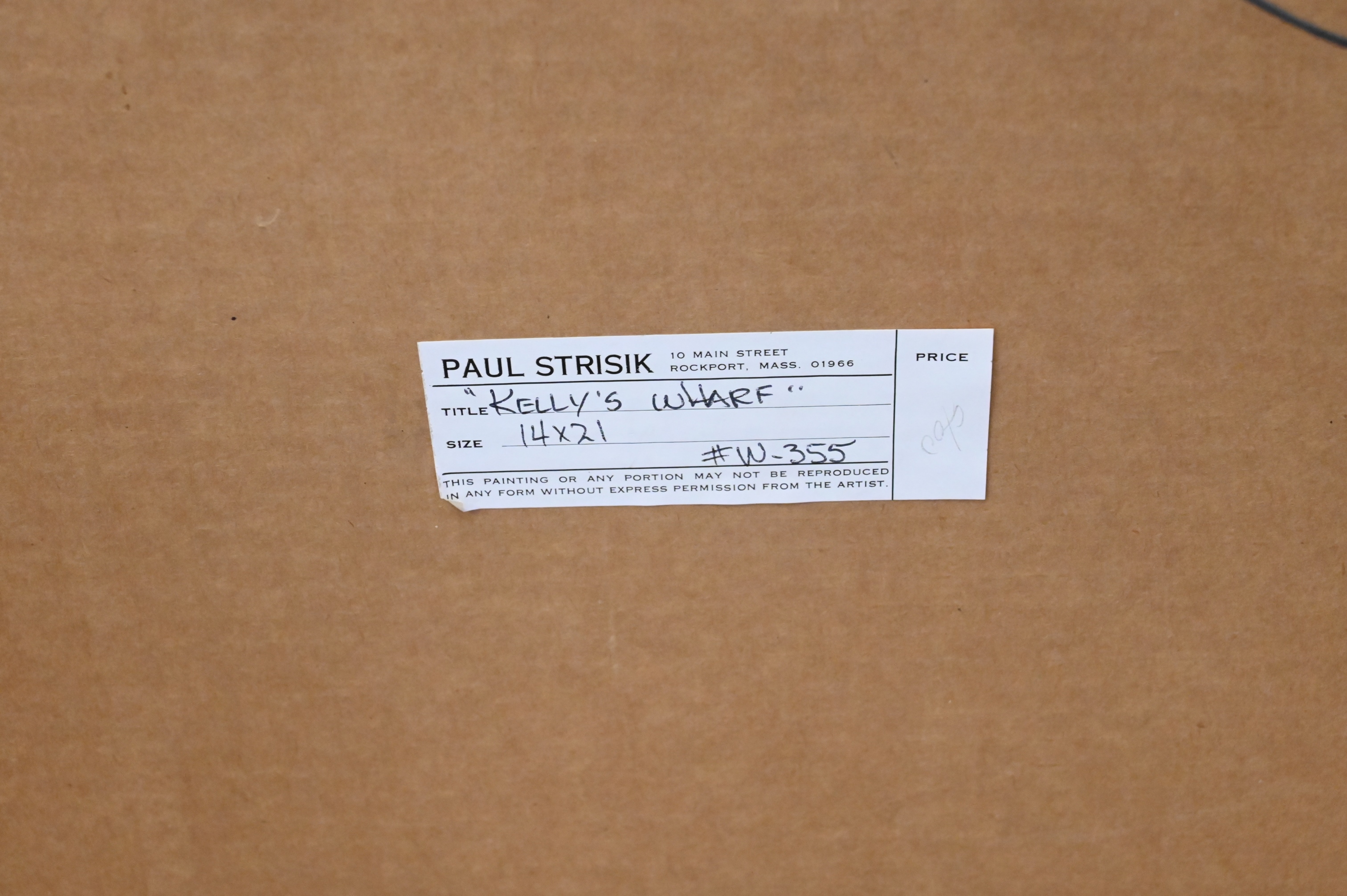 Paul Strisik (1918 – 1998) “Kelly’s Wharf” watercolor on paper label on back “Paul Strisik” sight size 14″ x 21″