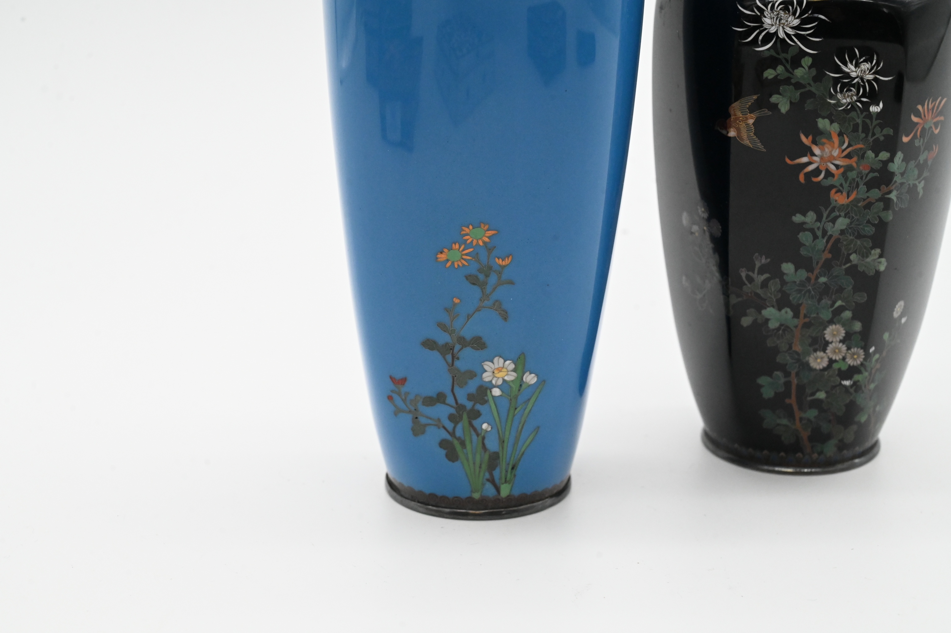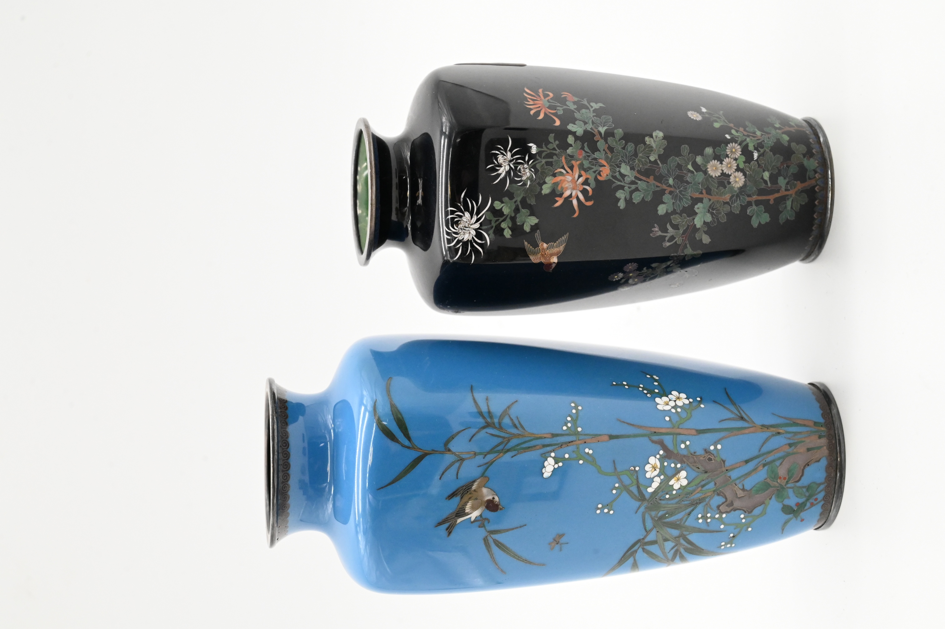 Two Japanese Fine Wire Cloisonne Vases