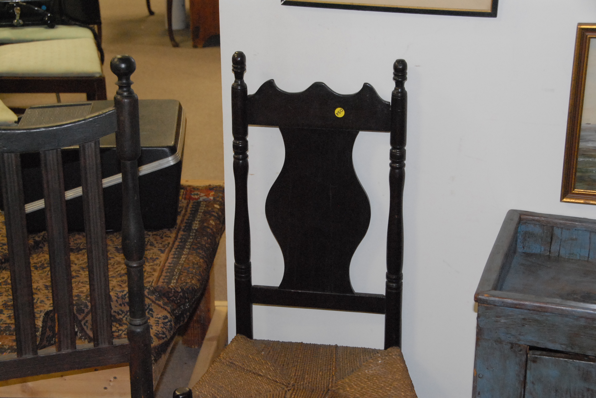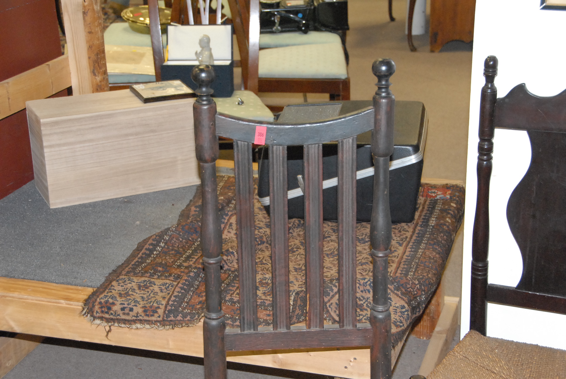 Two primitive side chairs, a banister back chair and a Queen Anne side chair