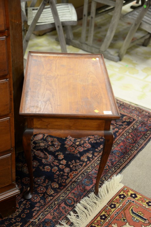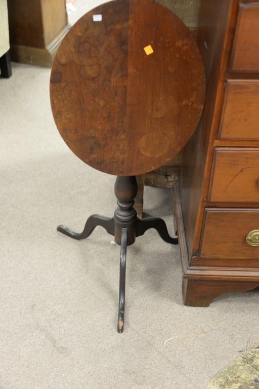 Two tables including Queen Anne style custom tea table and mahogany tip candlestand. ht. 23 1/2 in. and ht. 26 in.