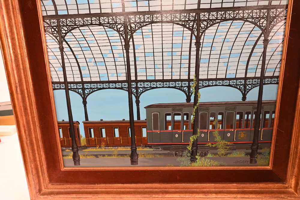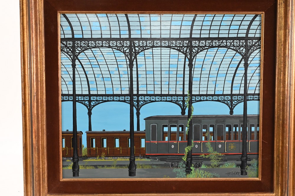 Lot 387: Gaston Bogaert (Belgian, 1918 – 2008), Trains, oil on masonite, signed lower right Bogaert, signed, having a Schleiper & Fils label…
