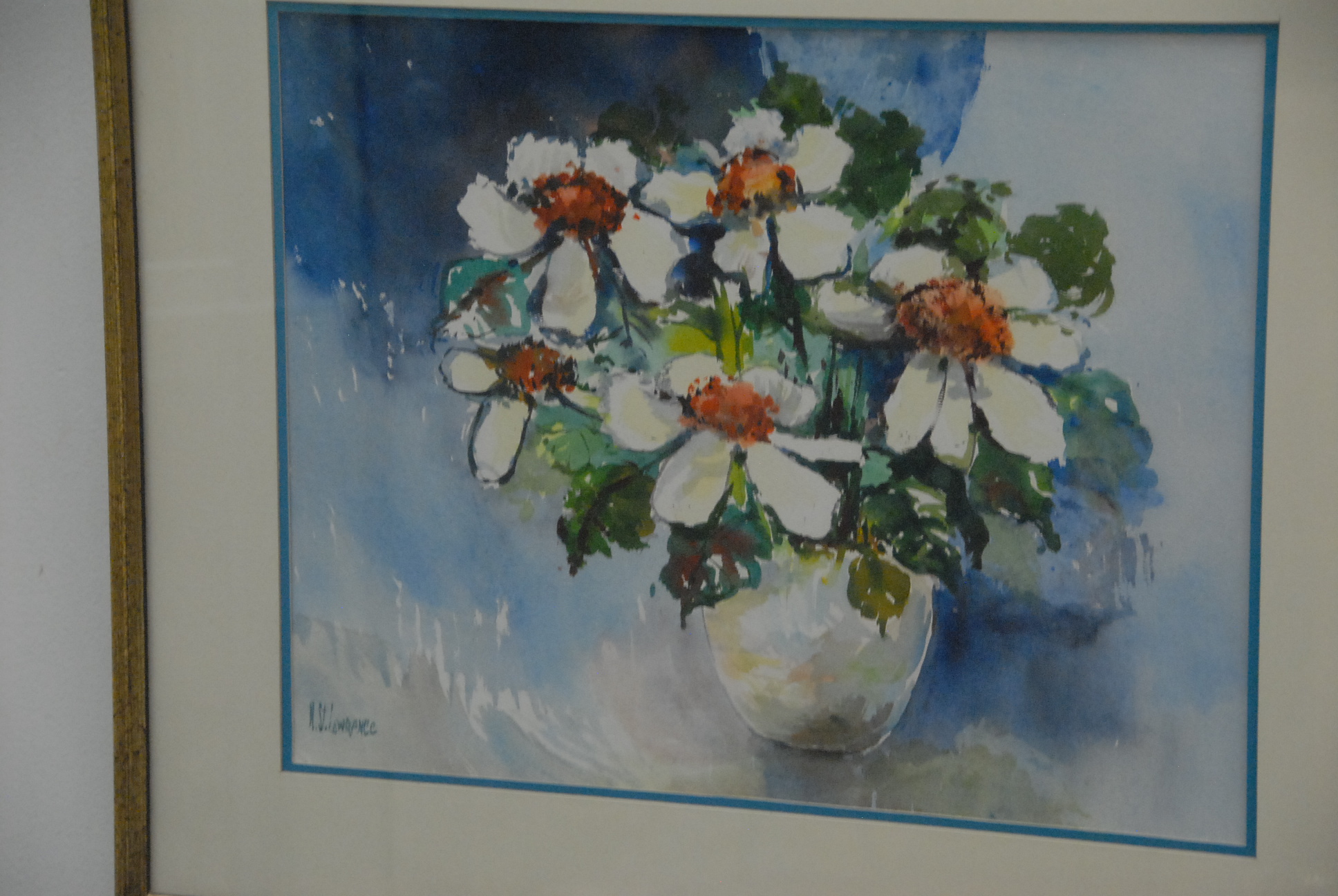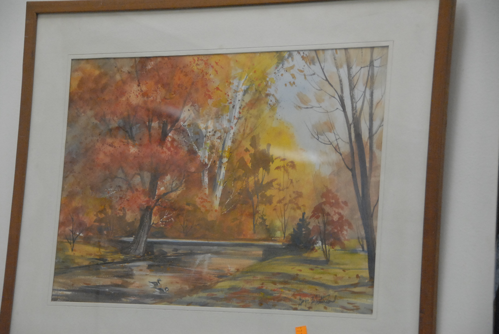 Lot 387: Group of seven framed pieces to include watercolor by Ted Jaslow 1934, watercolor by Isabel Shaffer 20th Century, watercolor sig…