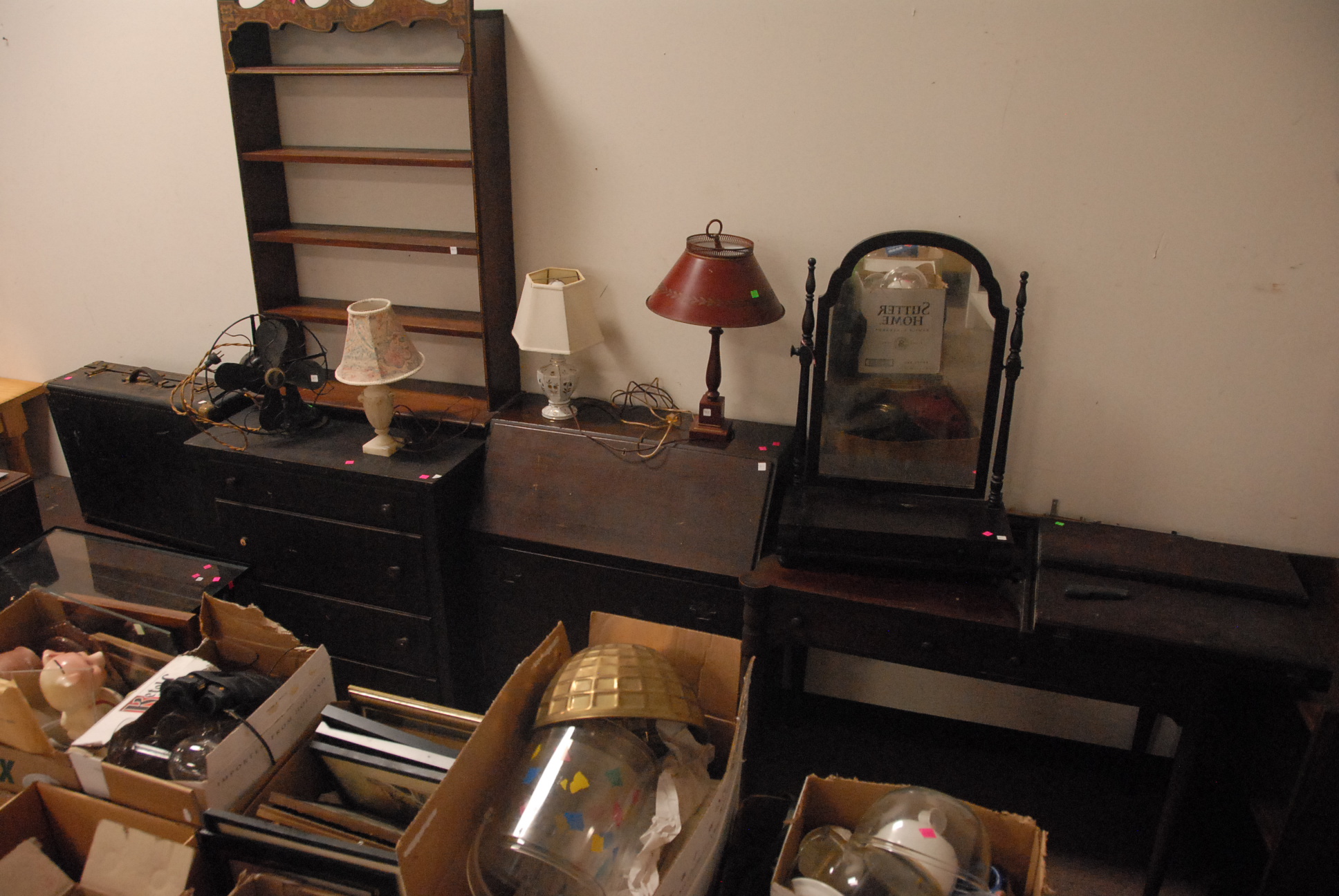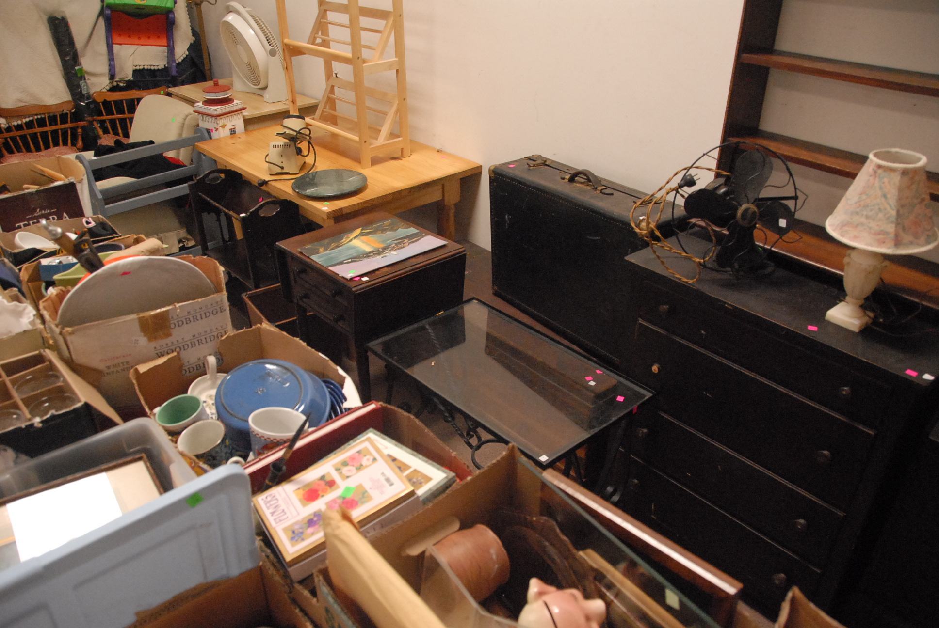 Lot 387: Items in this lot must be picked up no later than noon on Monday 6/10/13 Large house lot to include two tables on top and b…