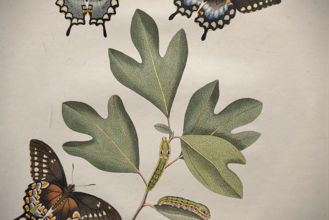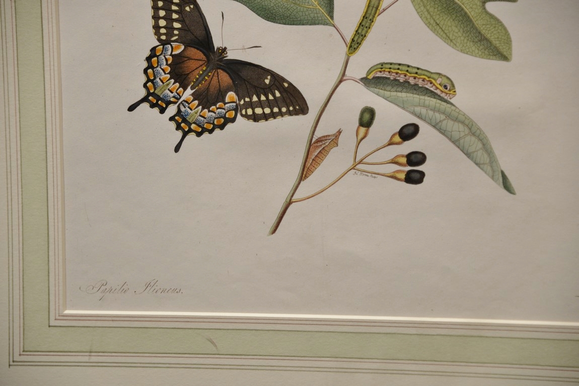Lot 387: John Abbot 1751-1839 pair of hand colored aquatint engravings Papilio Ilioneus, Sassafras Black Swallow Tail Butterfly Pla…