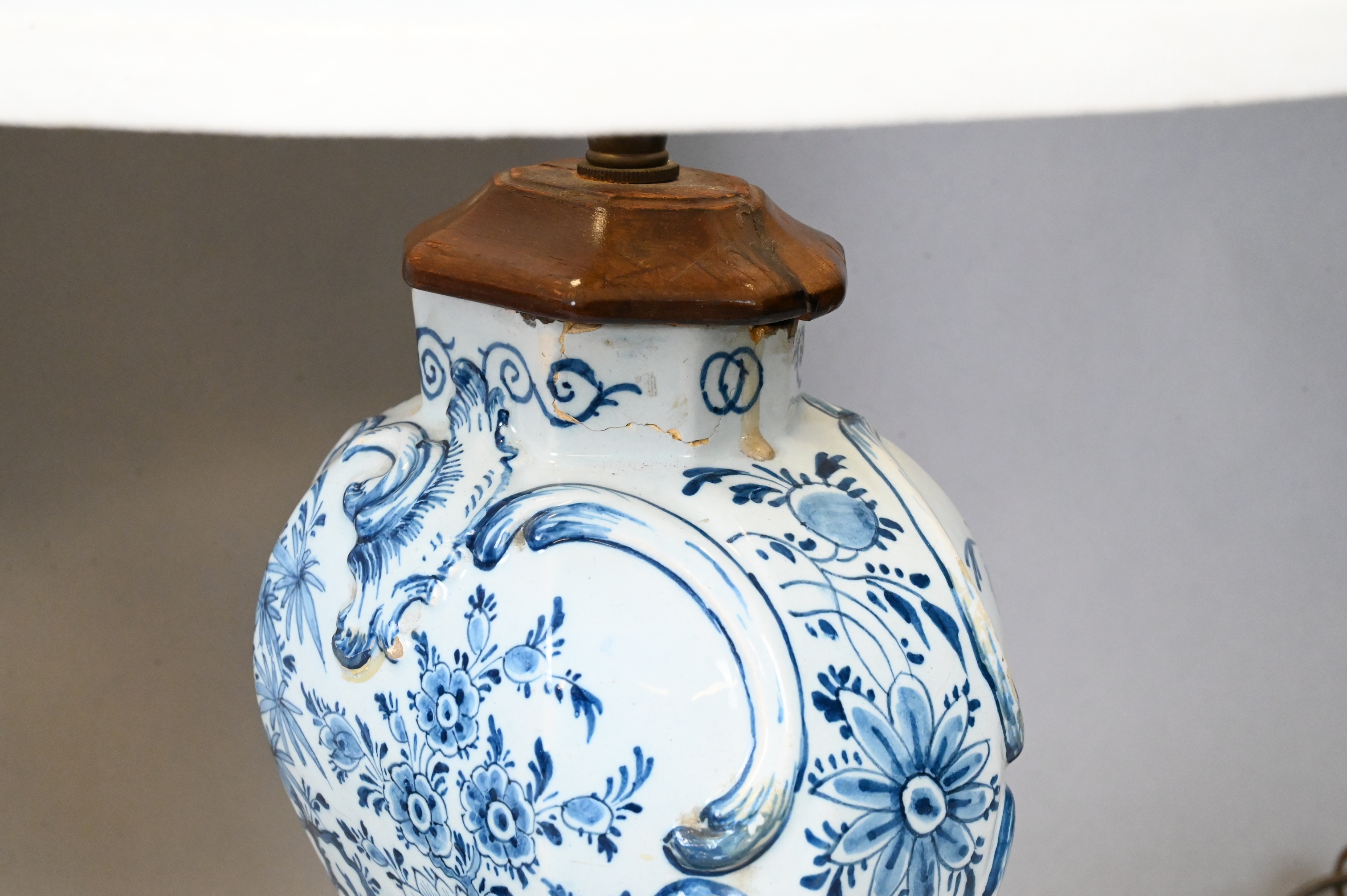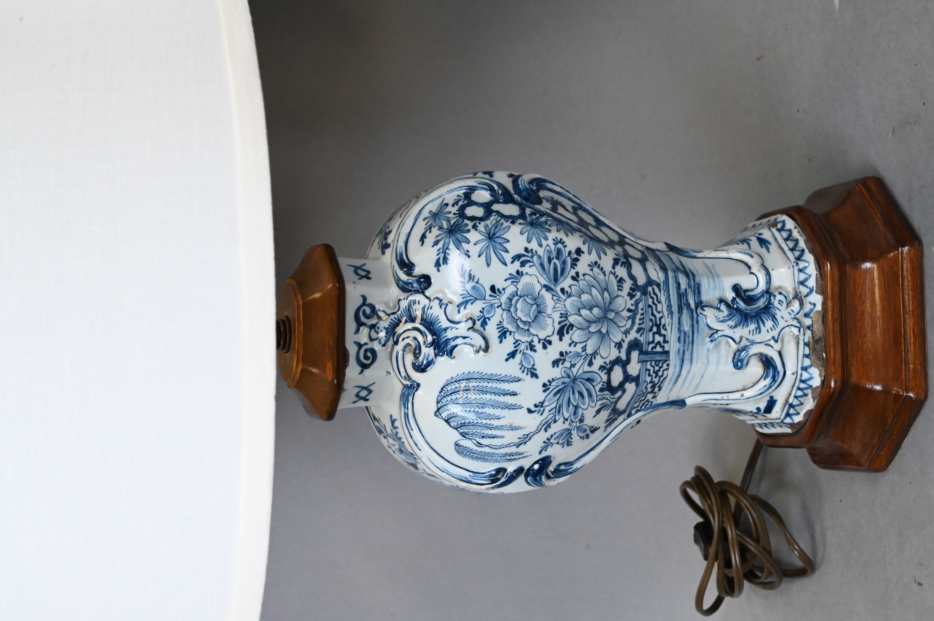 Lot 387: Pair of Blue and White Delft Pottery Lamps