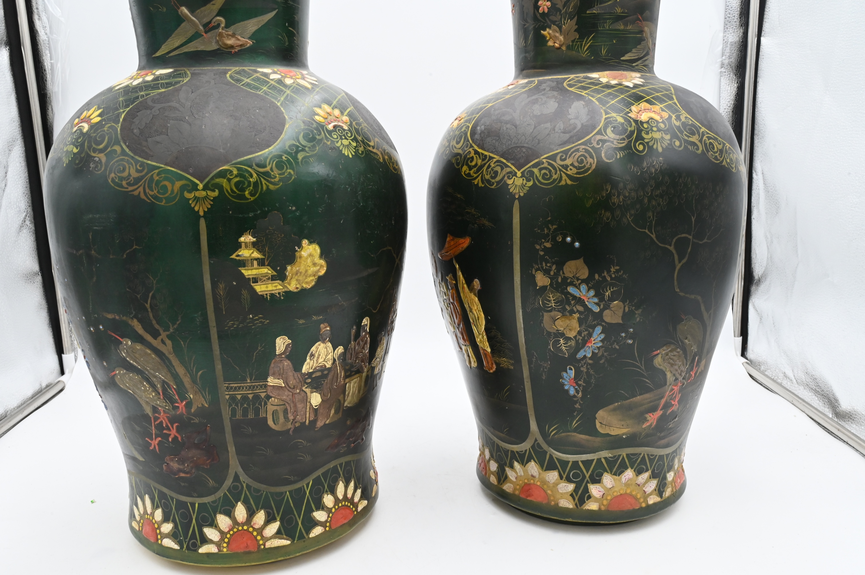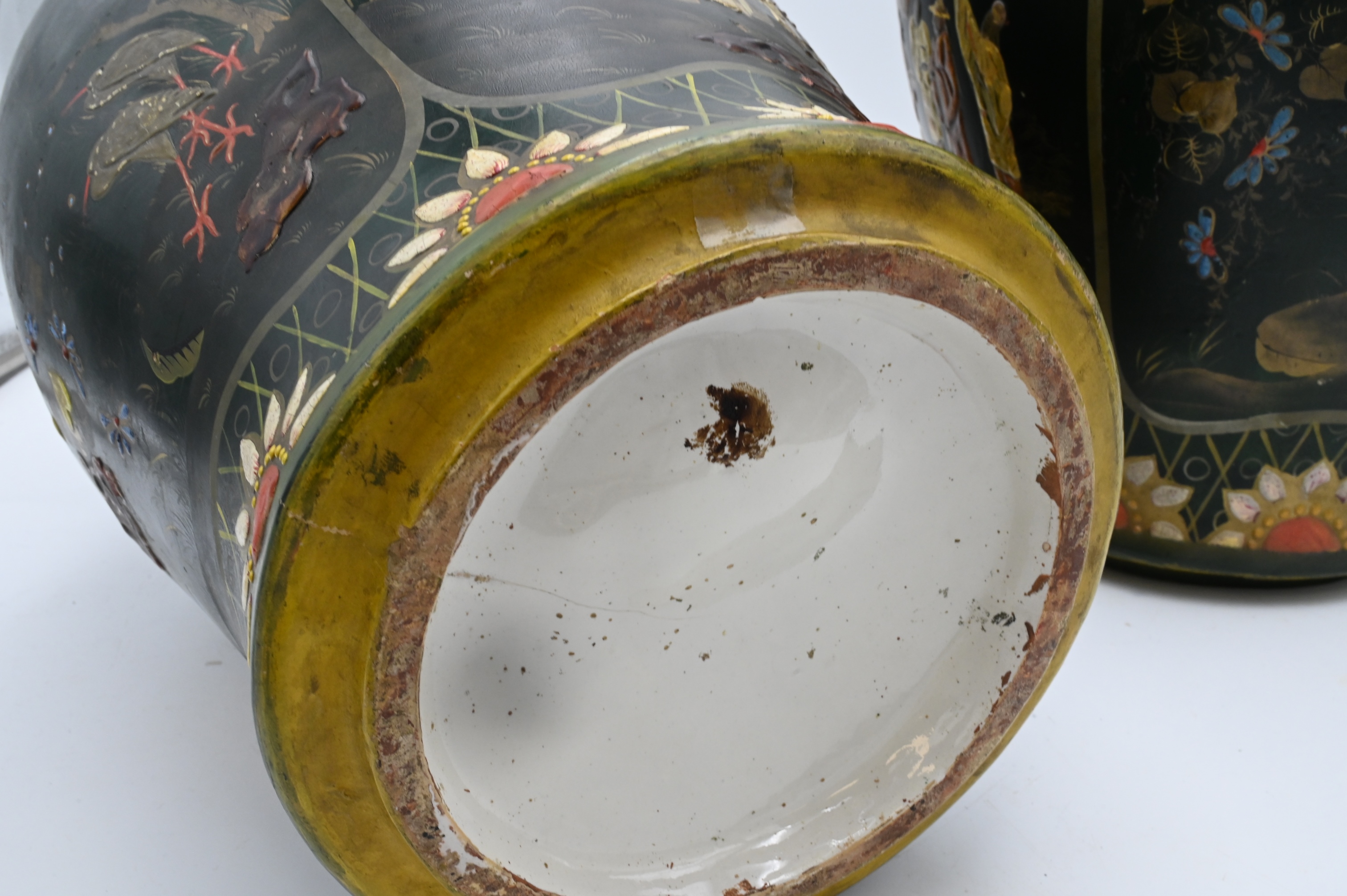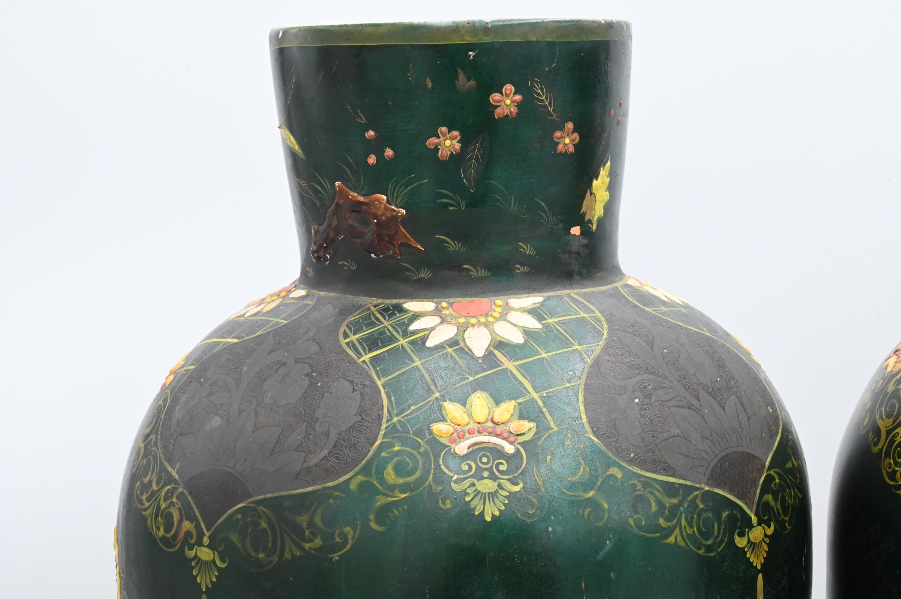 Lot 387: Pair of Large Berlin Green Faience Vases