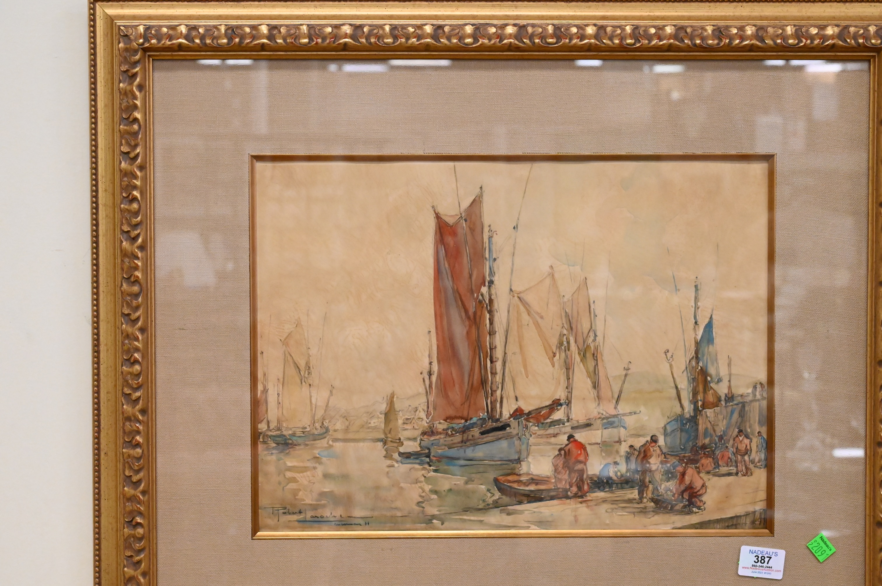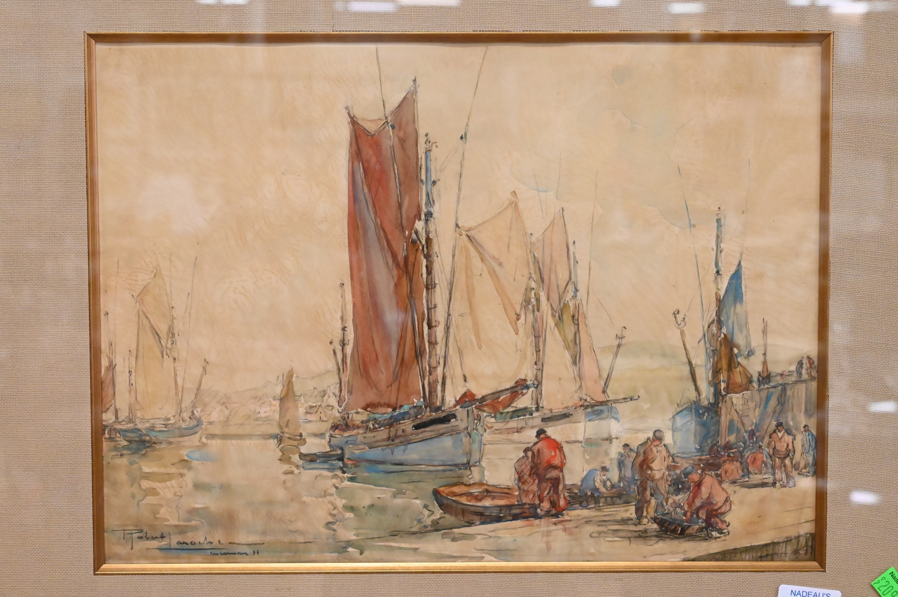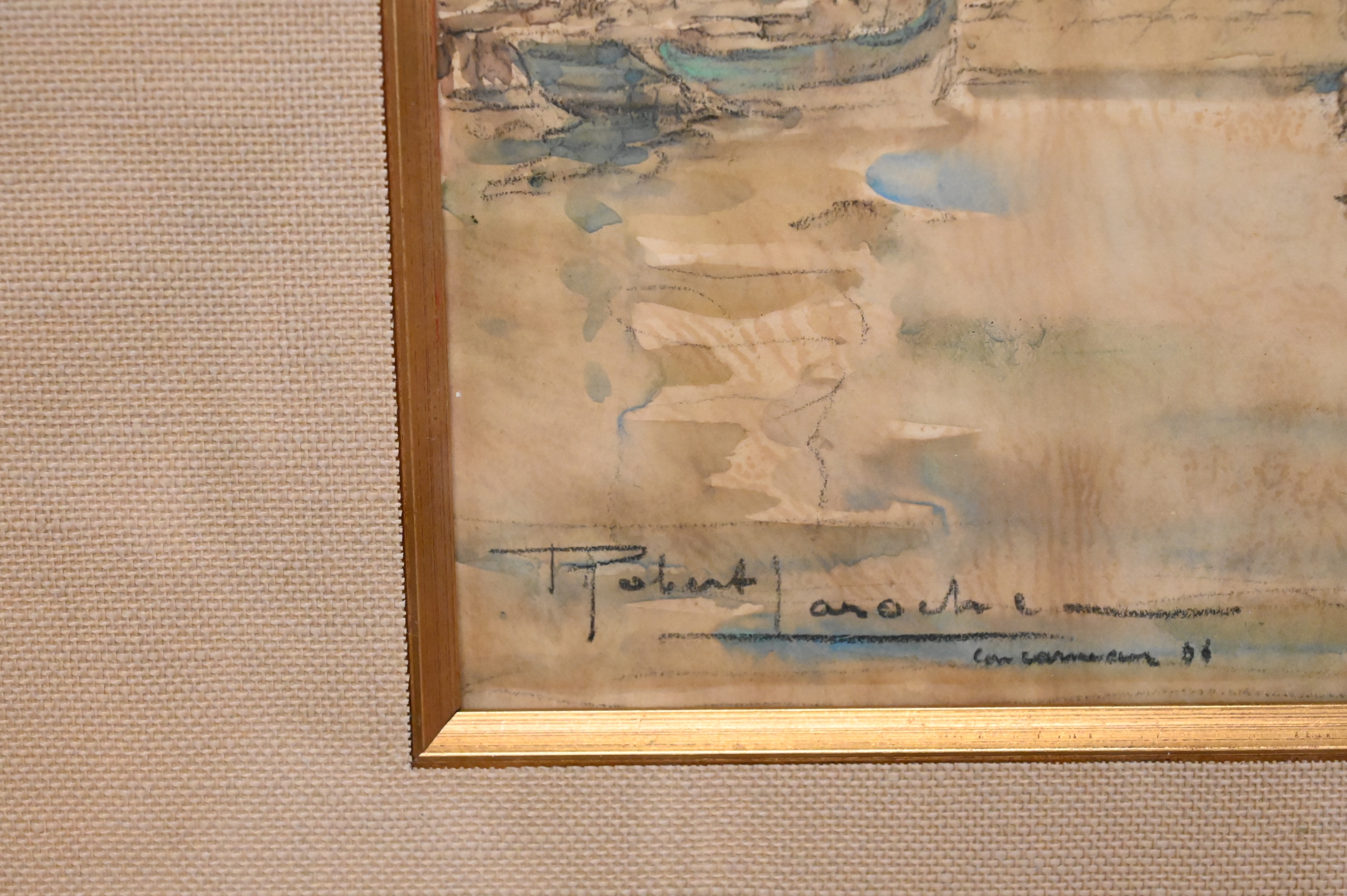 Robert Laroche (1896 – 1974) “French Fisherman’s Harbor” watercolor on paper signed lower left “Robert Laroche” sight size 12 1/2″ x 17″
