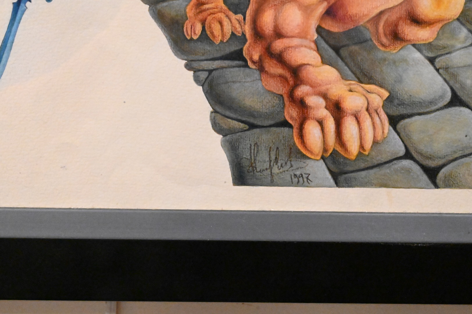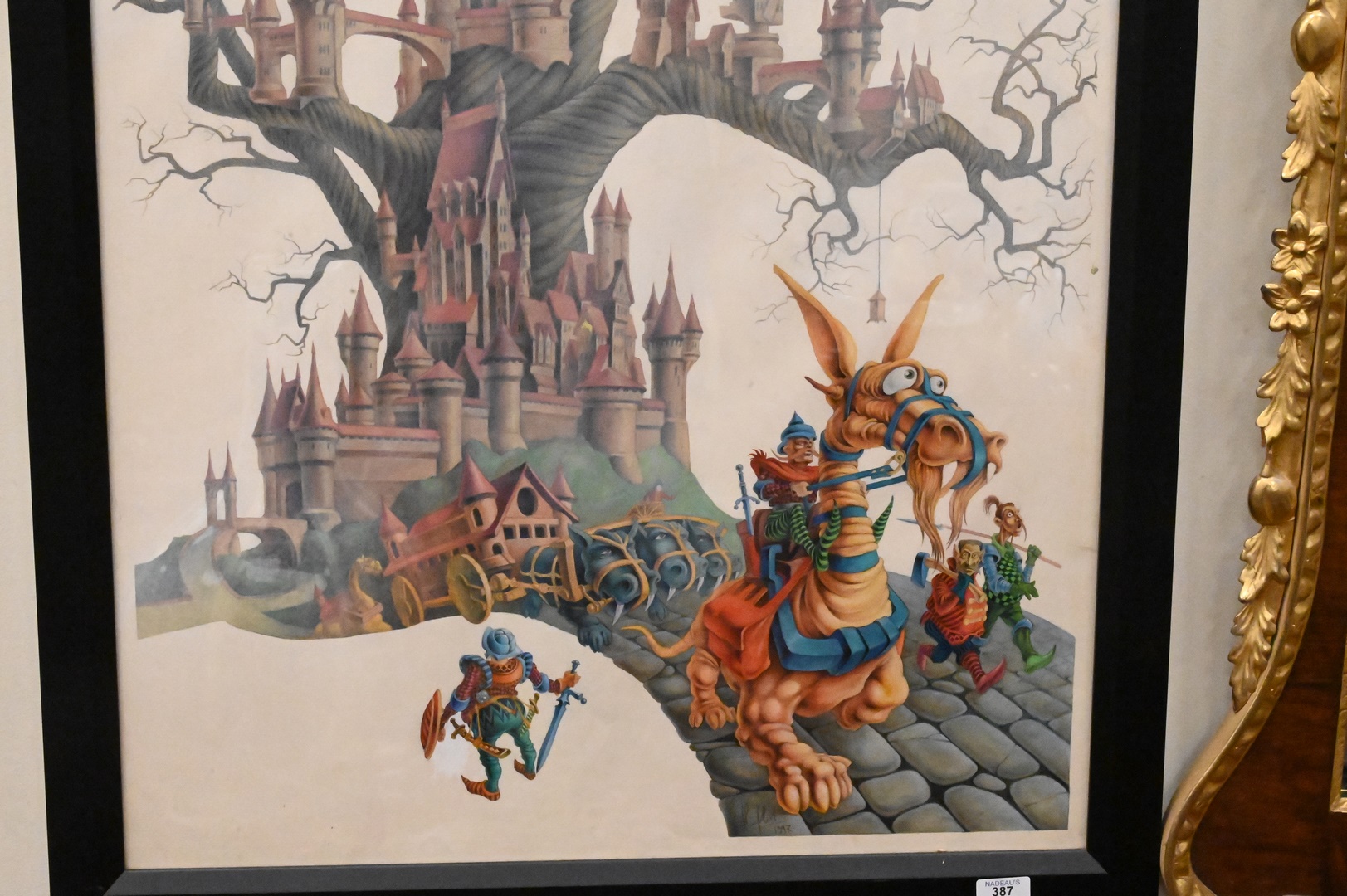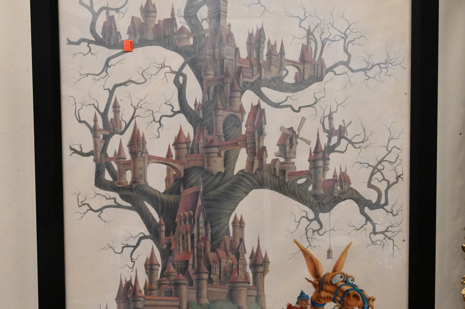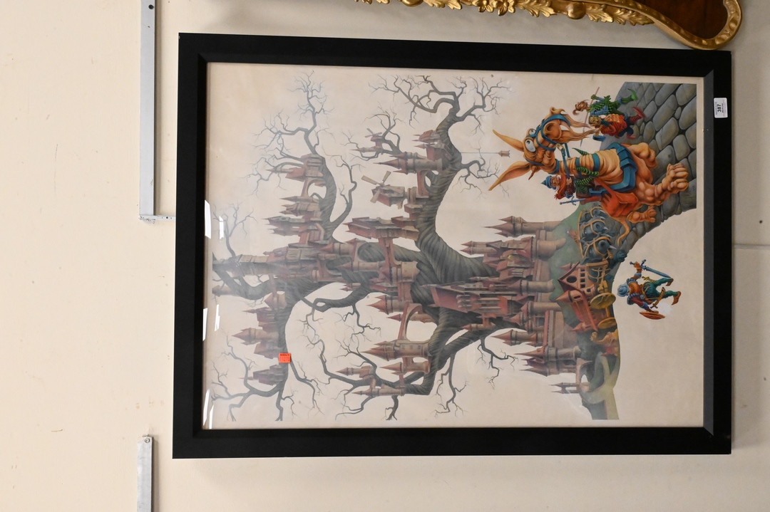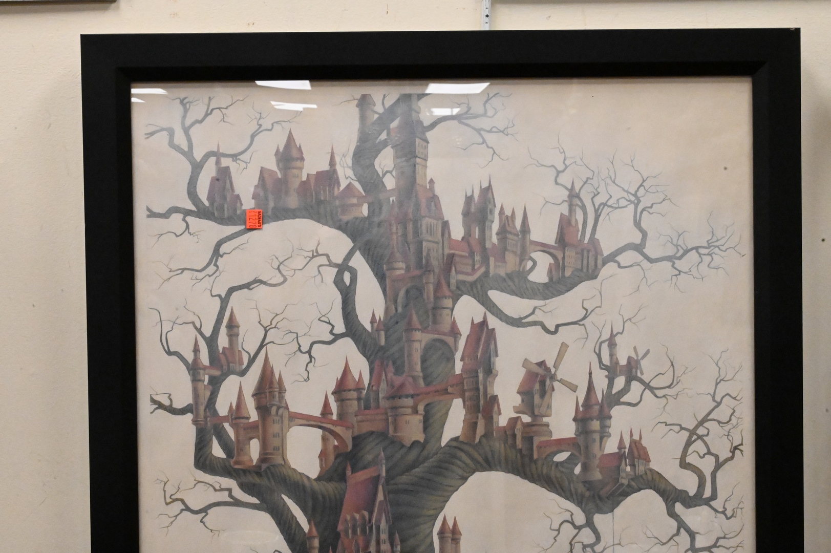 Sergey Poyarkov (b. 1965, Ukrainian), mixed media, “Treetown”, signed lower right “Sergey Poyarkov, 1997″, 37″ x 26 1/2”. Provenance: Estate of Peter Tillou, Litchfield, Connecticut.