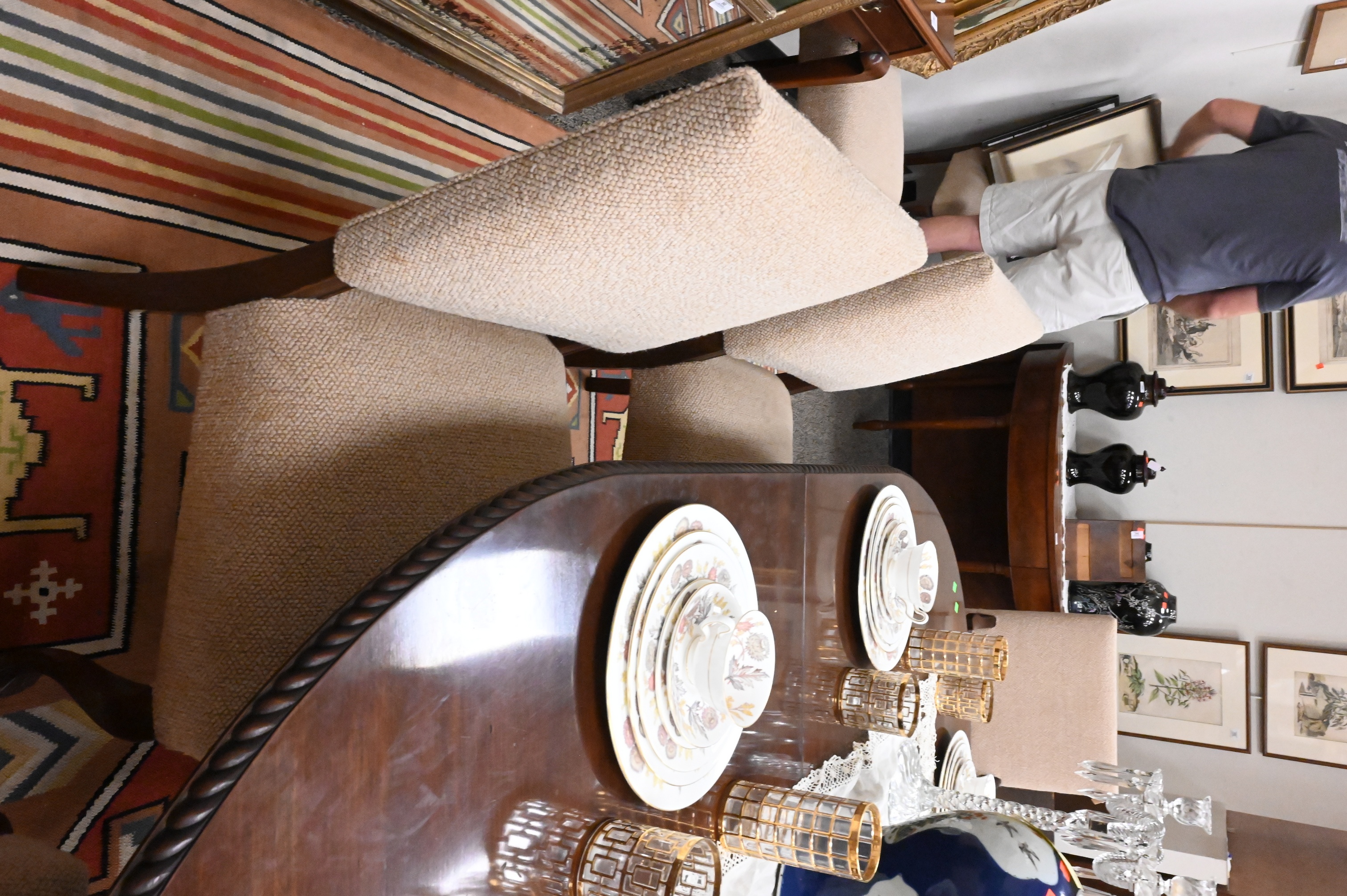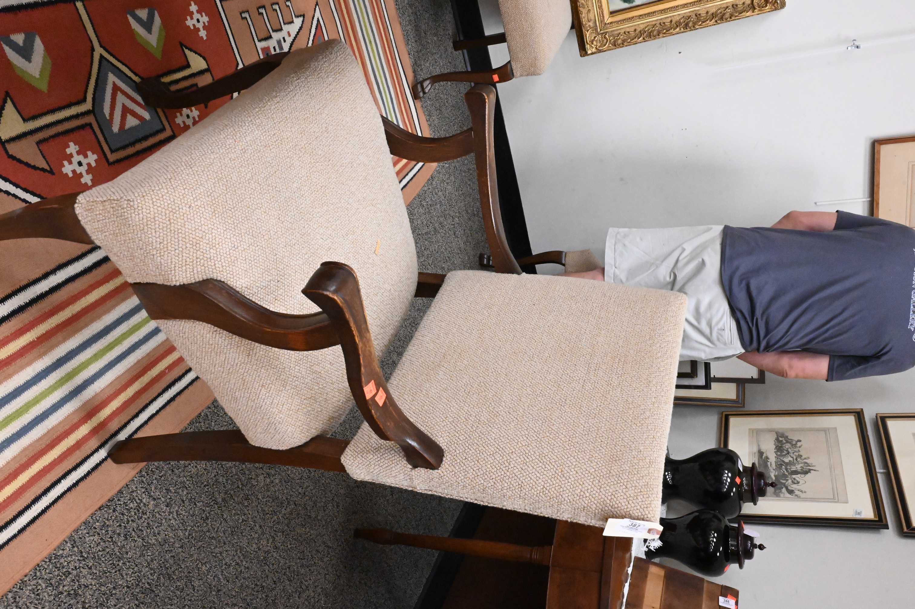 Lot 387: Set of 10 Oak Upholstered Dining Chairs