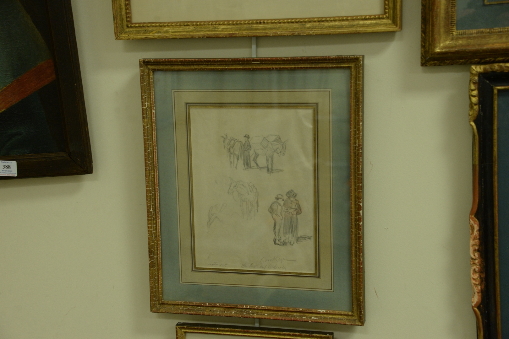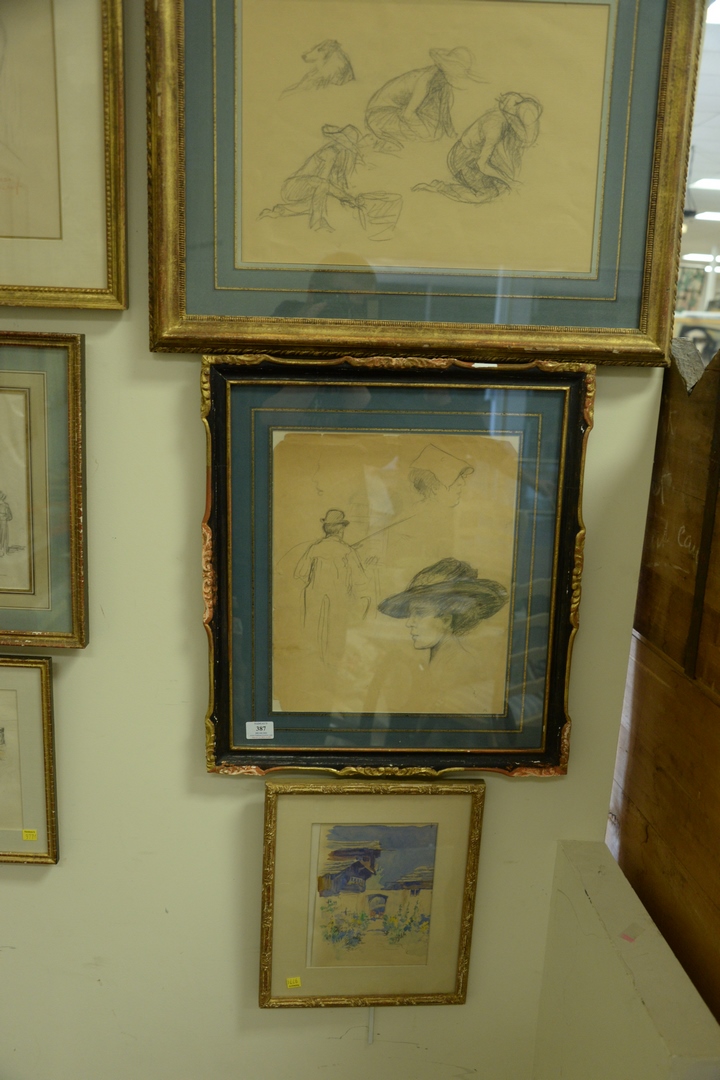 Lot 387: Six Piece Group of Framed Works on Paper, to include five watercolor and pencil sketches by Erica Von Kager along with a pencil on …