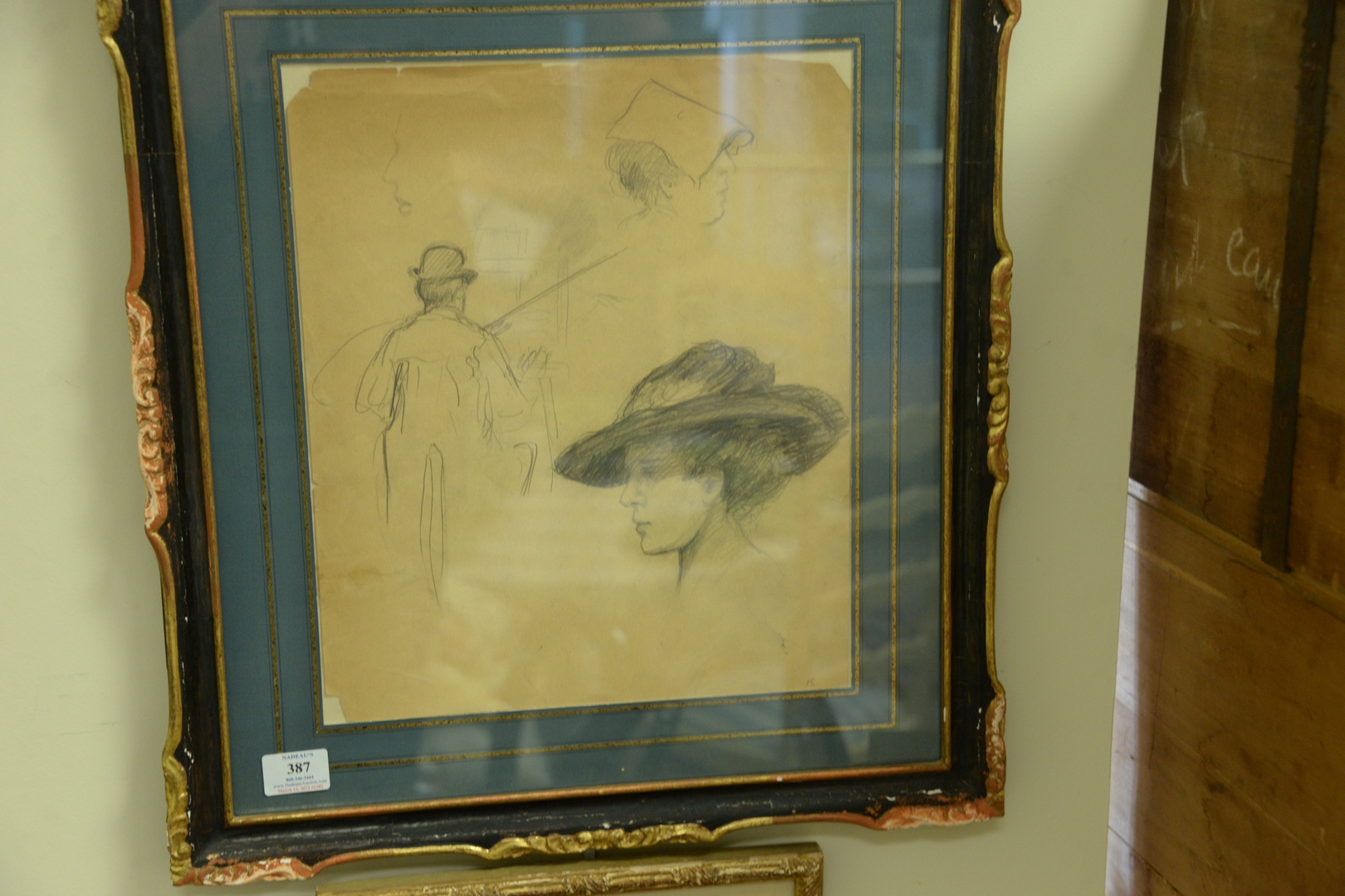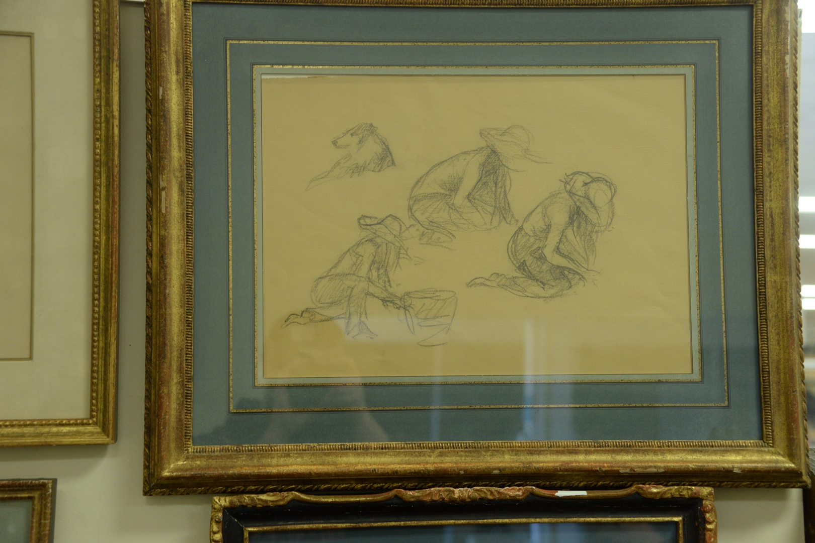 Six Piece Group of Framed Works on Paper, to include five watercolor and pencil sketches by Erica Von Kager along with a pencil on paper of a young boy by Freda Delaney, largest image 13 1/2 x 17.