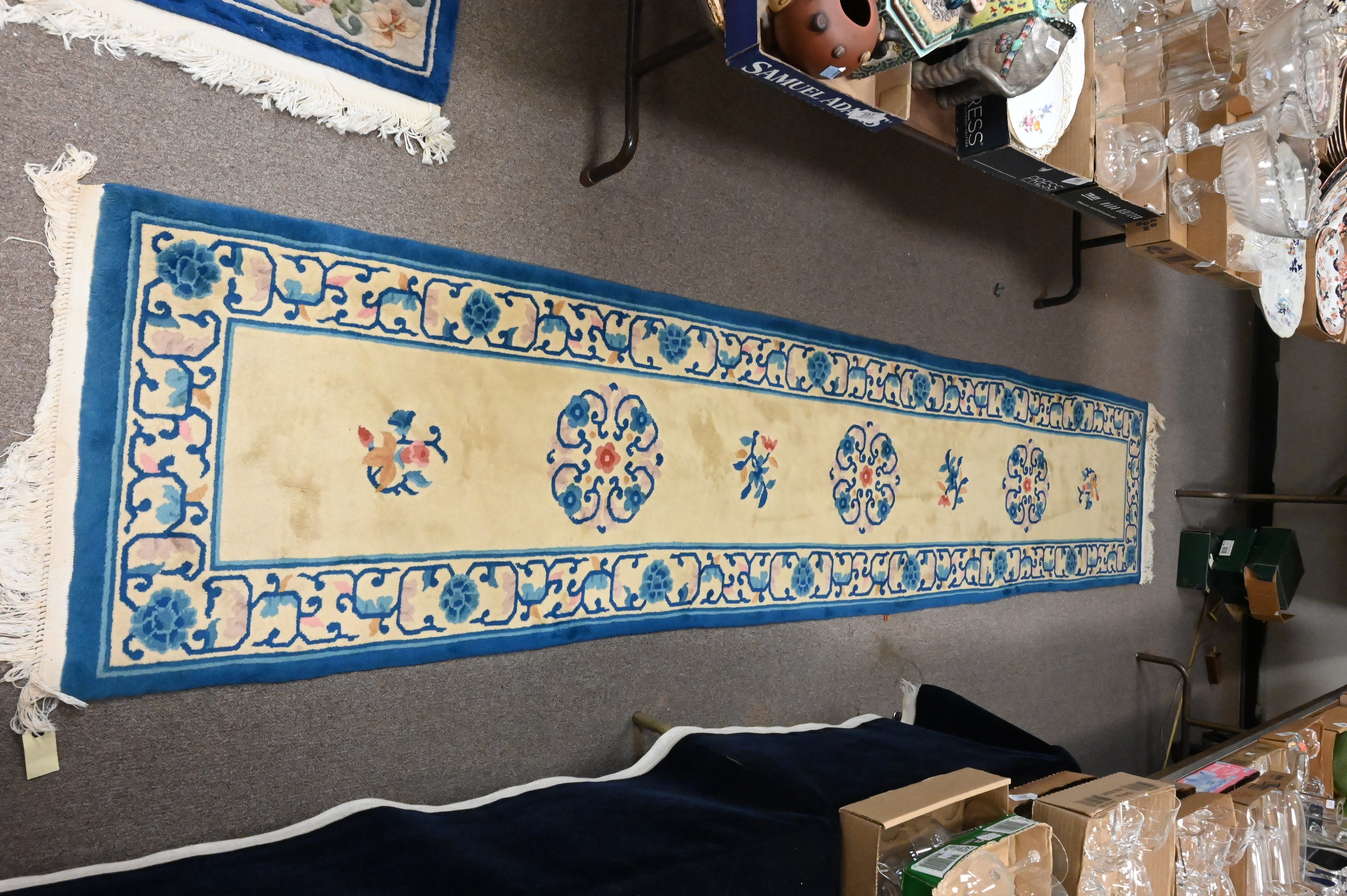 two throw rugs 2’4″ x 4’8″, 2’4″ x 4’8″, one runner 2’3 x 11′