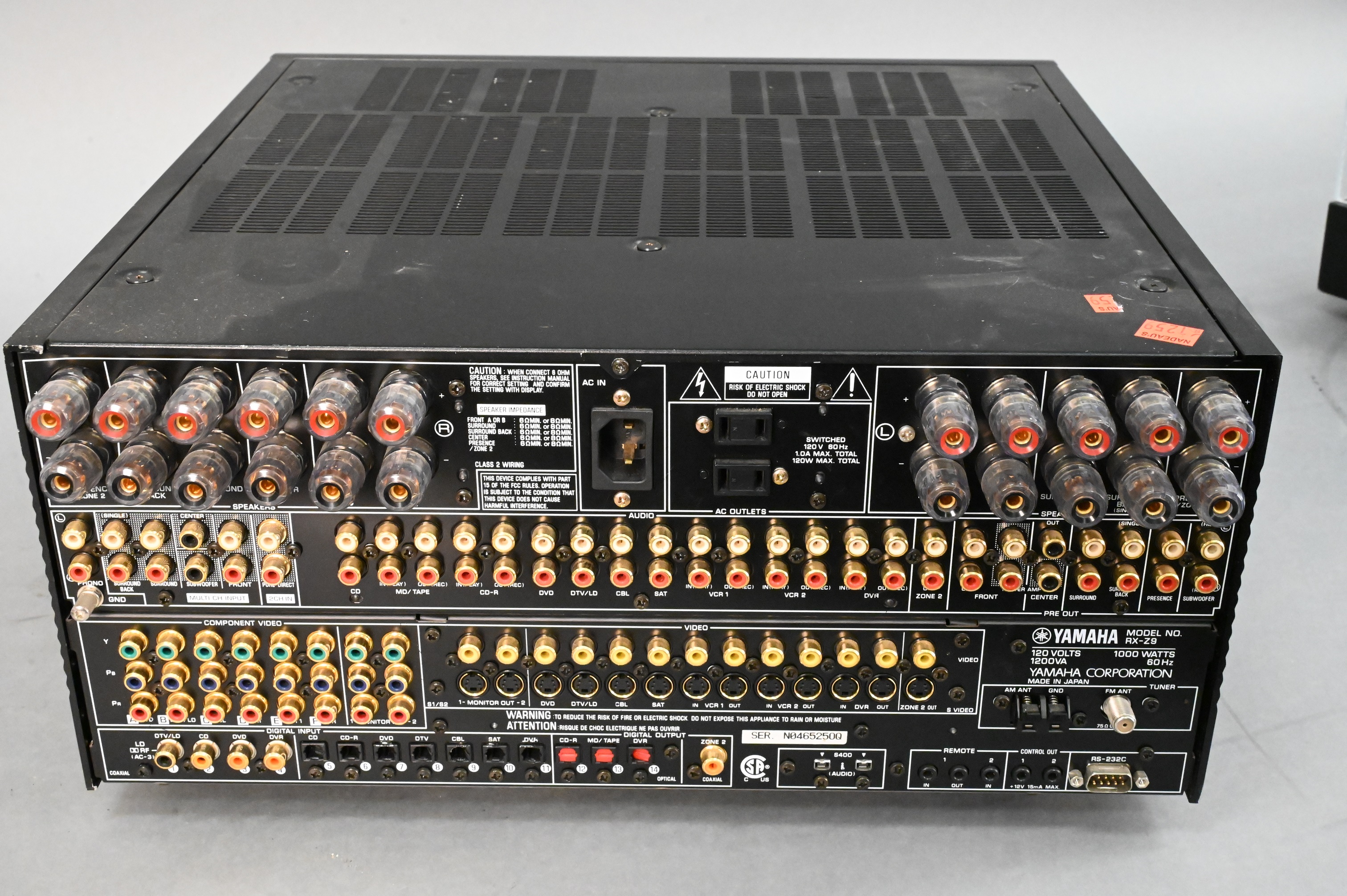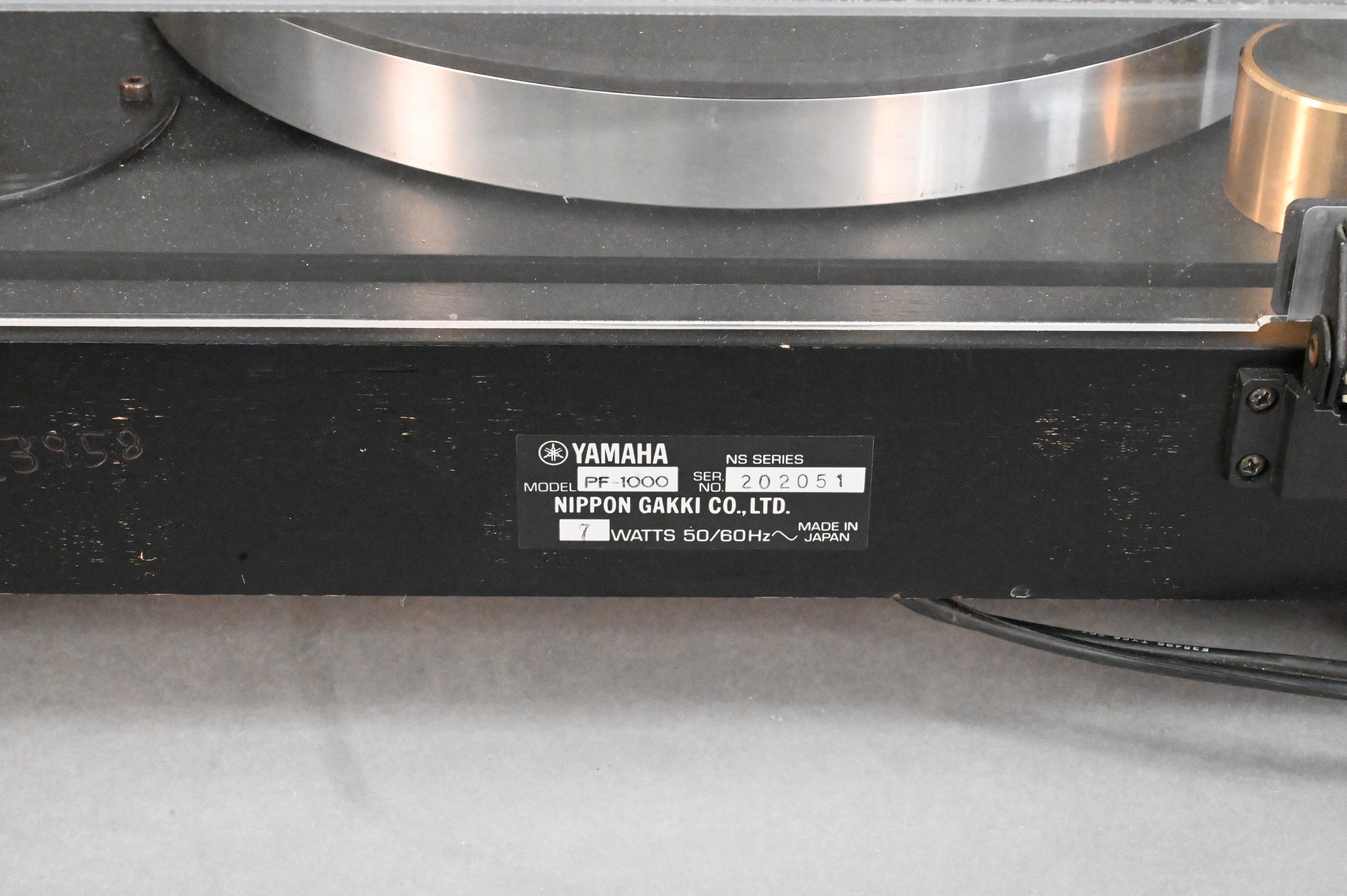 Yamaha Natural Sound AV Receiver and Turntable, models RX-29 and PF-1000, larger height 8 1/2 inches, width 17 inches, depth 17 inches.