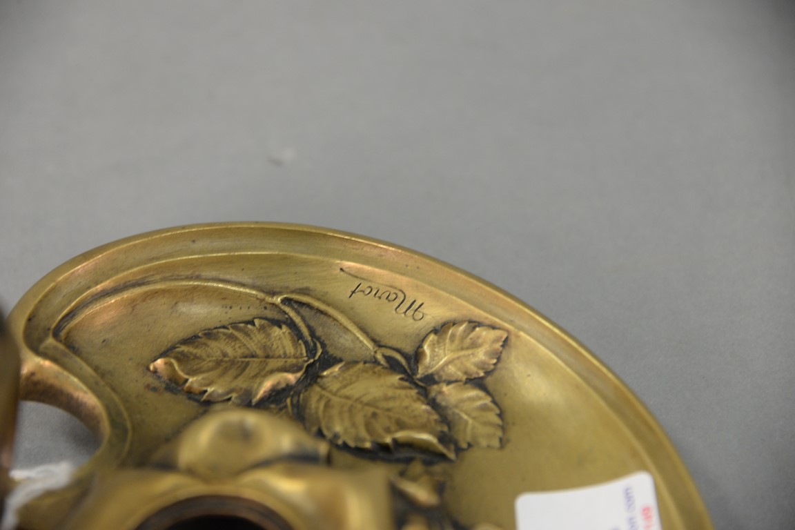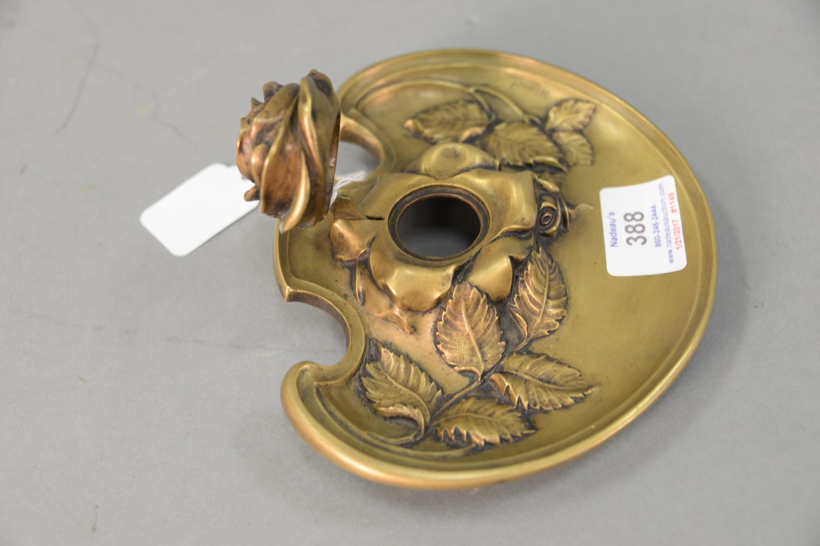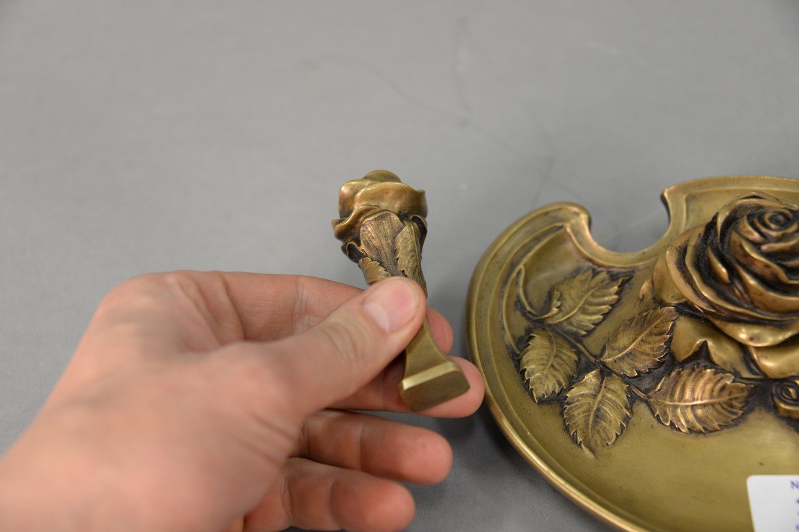 Bronze rose inkwell and seal stamp, both marked Marot. lg. 7in.