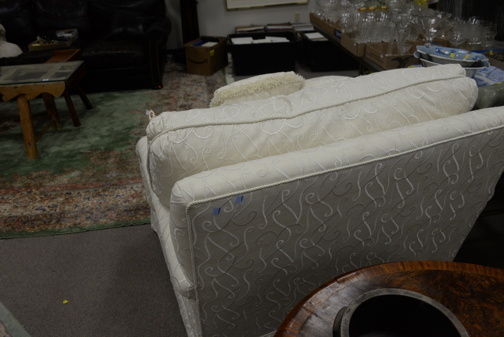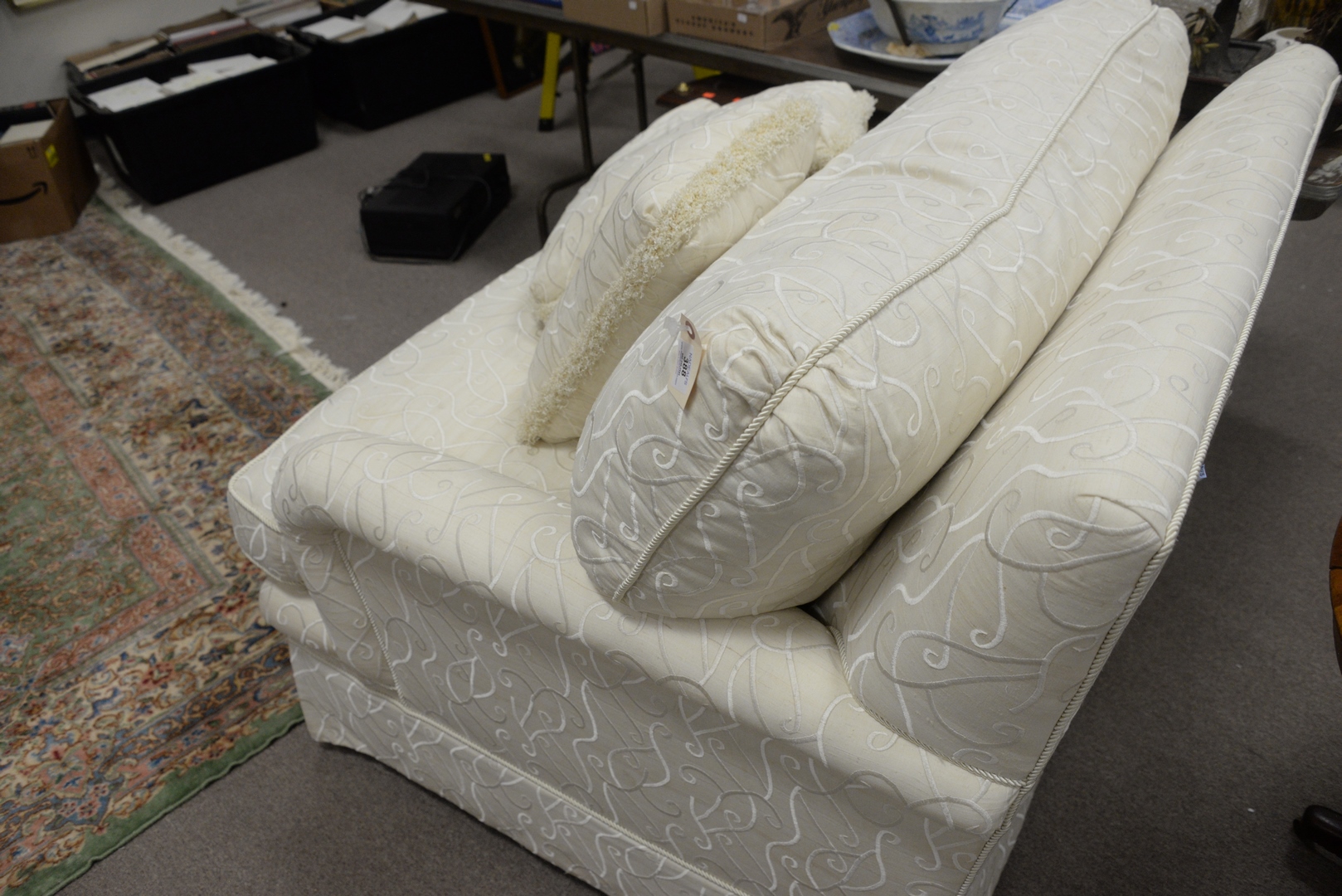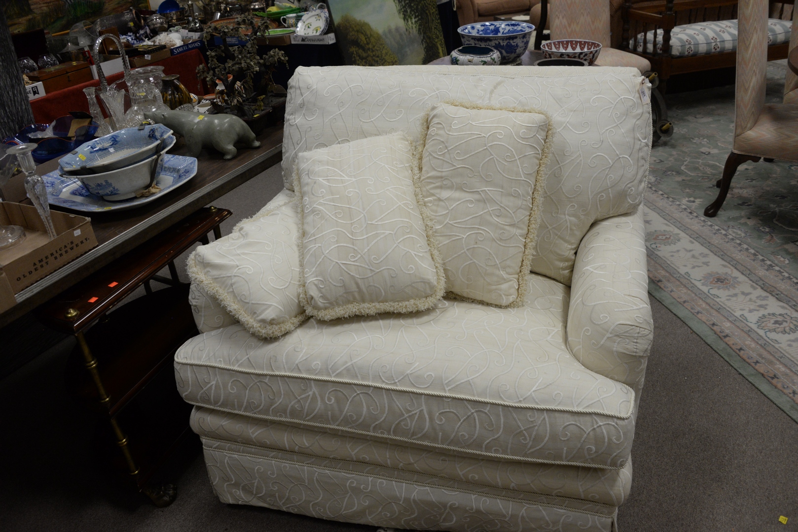 Lot 388: Councill Furniture Company Upholstered Easy Chair, along with three extra pillows, height 37 inches, width 43 inches.