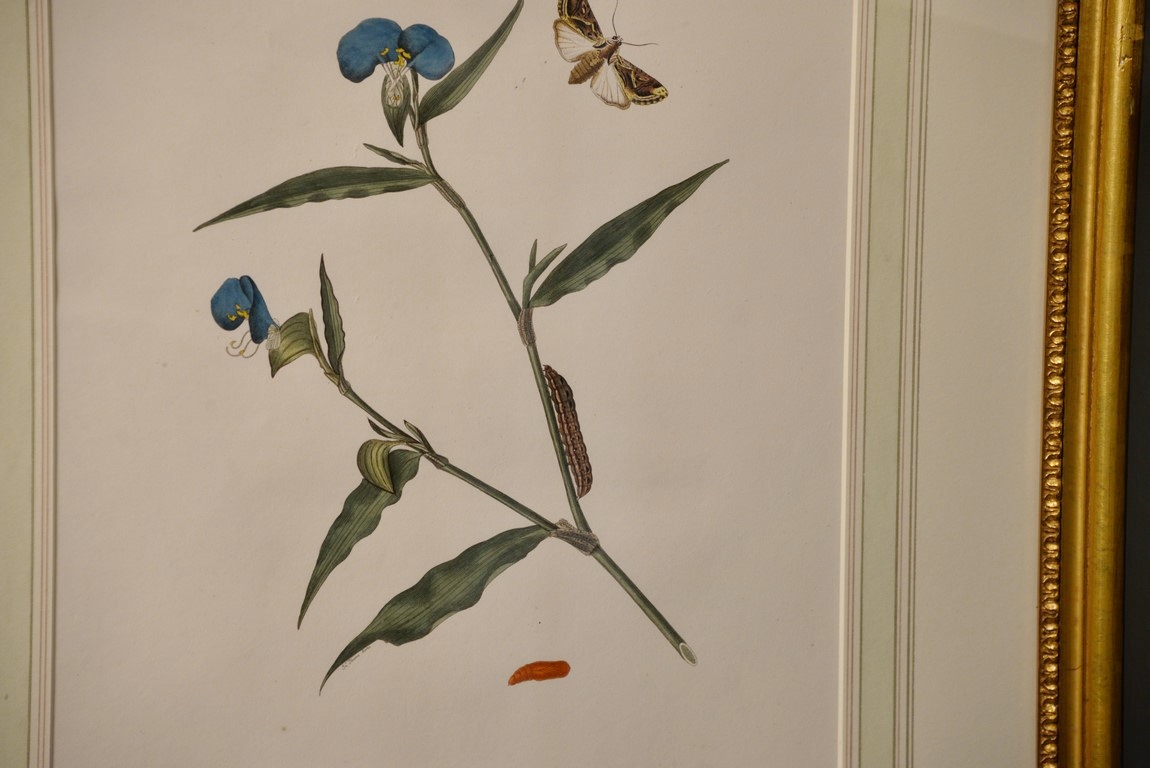 John Abbot 1751-1839 pair of hand colored aquatint engravings Phalaena Aceris, Grey Maple Moth Plate #93 and Phalaena Commelinae, Commelina or Wild Comfrey Moth Plate #95 From The Natural History of the Rarer Lepidoterous Instects of Georgia Published by James Edward Smith 1759-1828 framed and matted by W. Graham Arader III sight size: 14 x 11 Provenance: Property from Credit Suisse’s Americana Collection