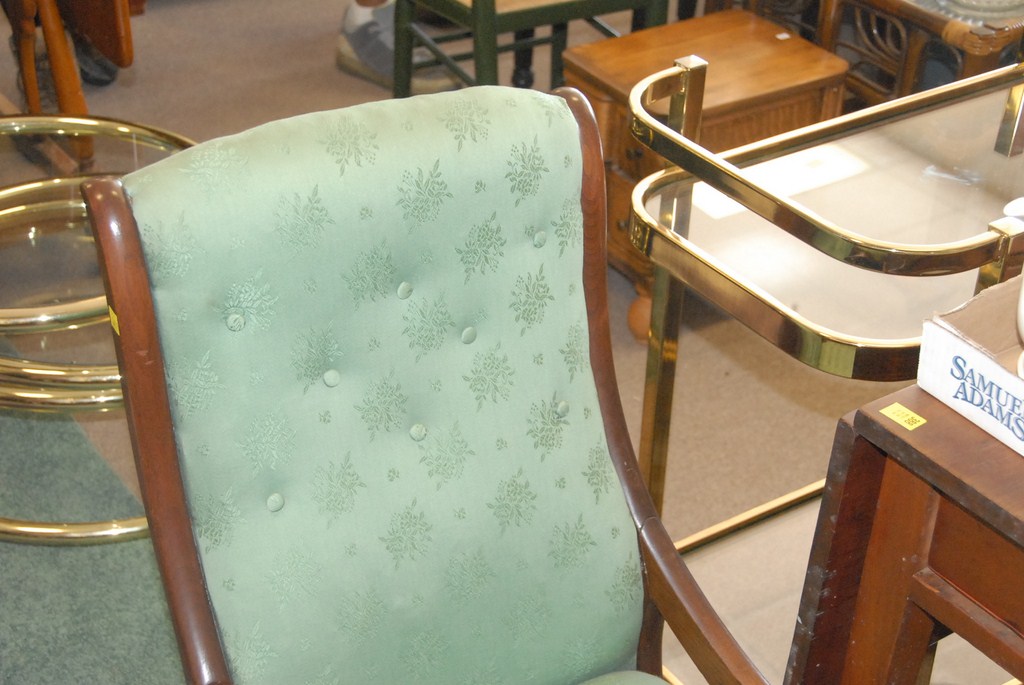Pine dropleaf one drawer stand and Victorian rocking chair.