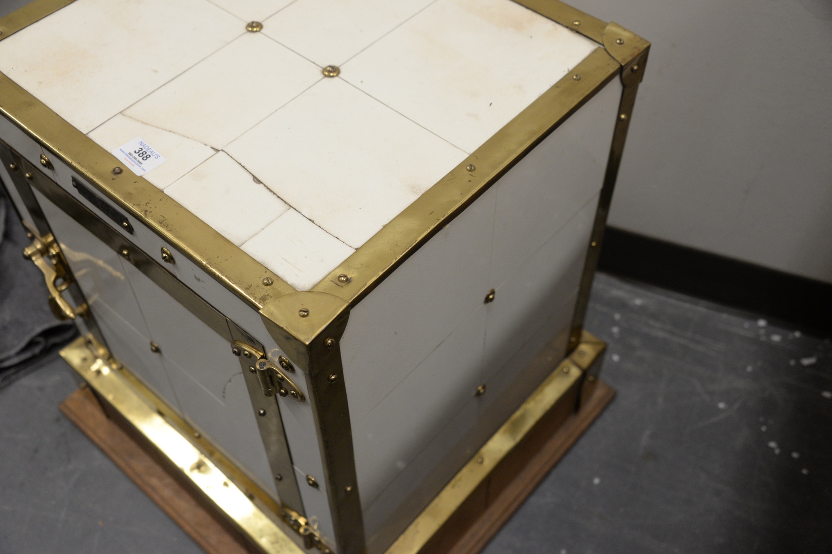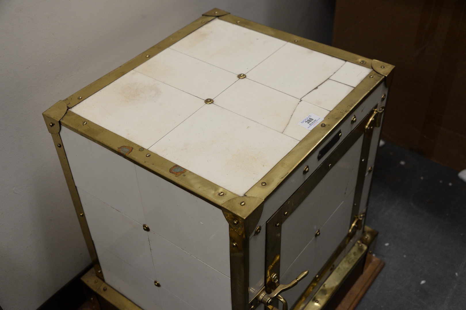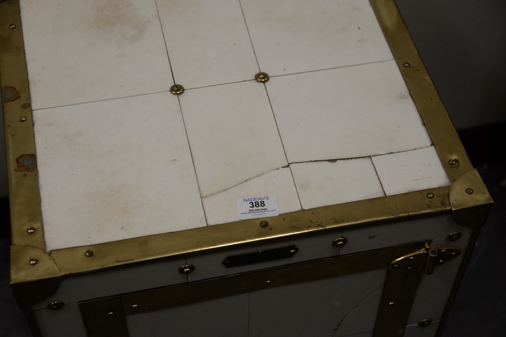 Porcelain Tile and Brass Cigar Humidor, height 23 inches, top 16 1/4 x 17 1/2, cracked tile.