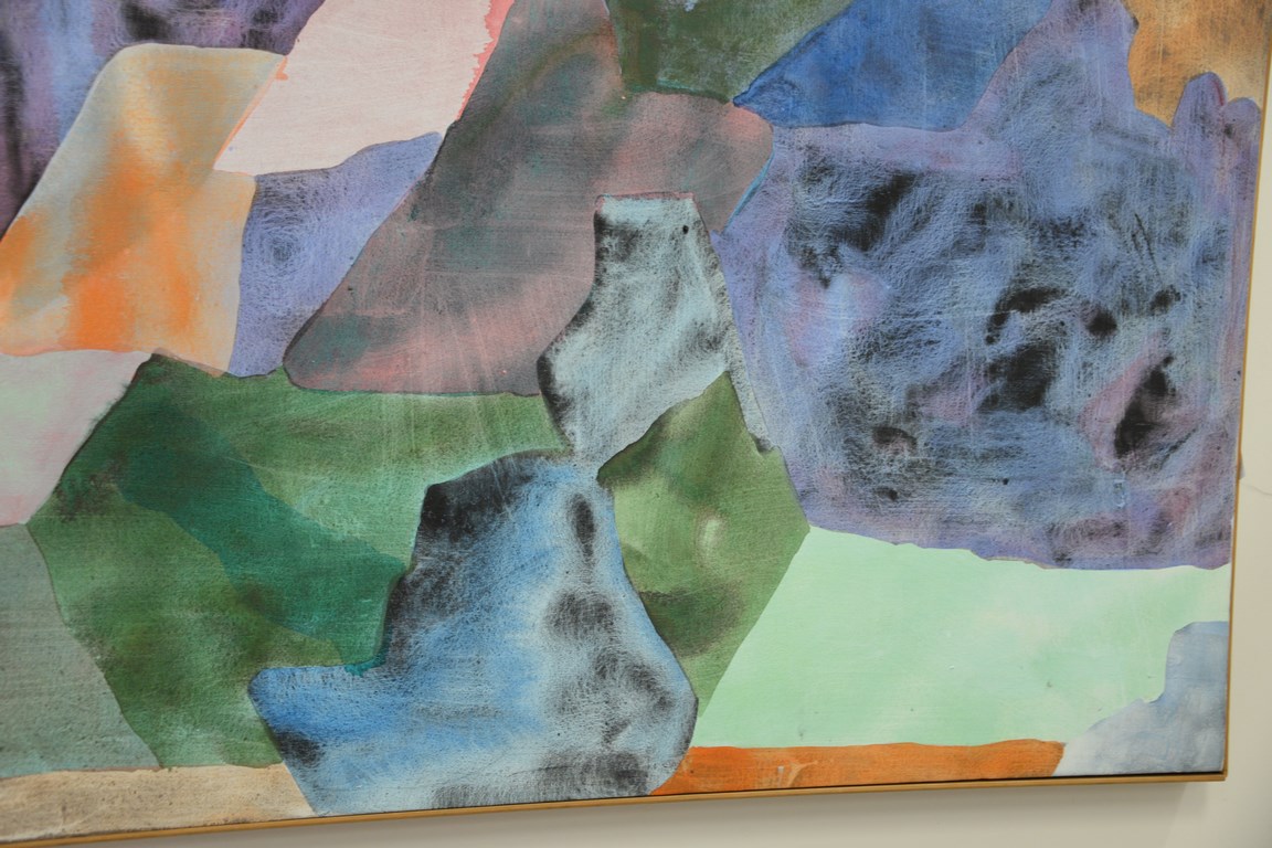 Lot 388: Sue Childress acrylic on canvas Bimini unsigned, with Charles Cowles Gallery label on reverse, 50 x 89 1/2.