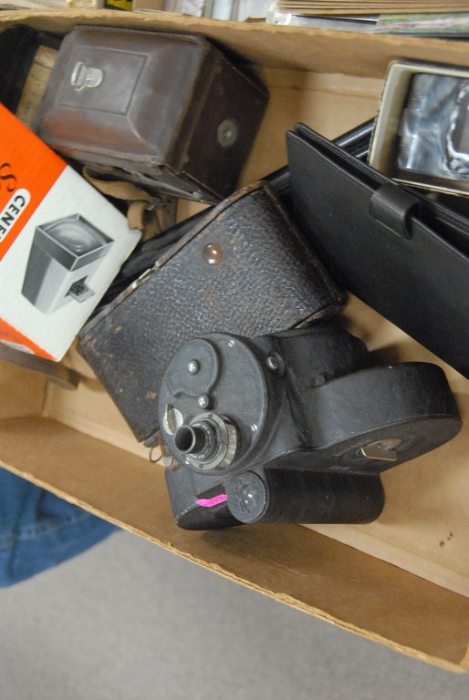 Two boxes of cameras including Bell and Howel Film camera model 70 movie camera.