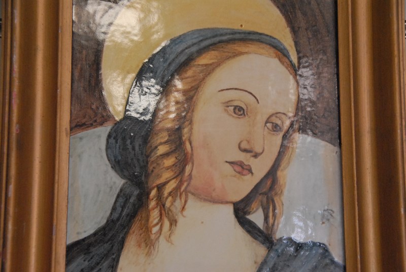 Two painted plaques to include one of Mary signed Rossini and the other signed Rita.