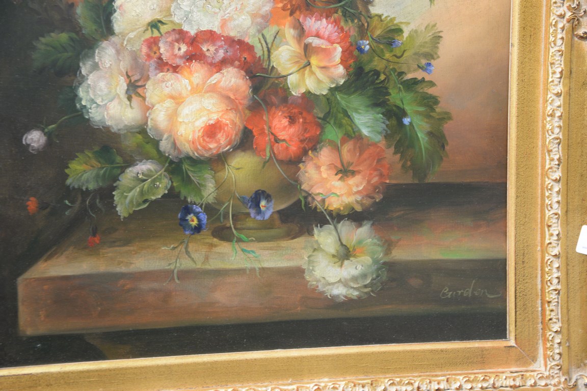 Contemporary still life of flowers in a vase, 24 x 20.