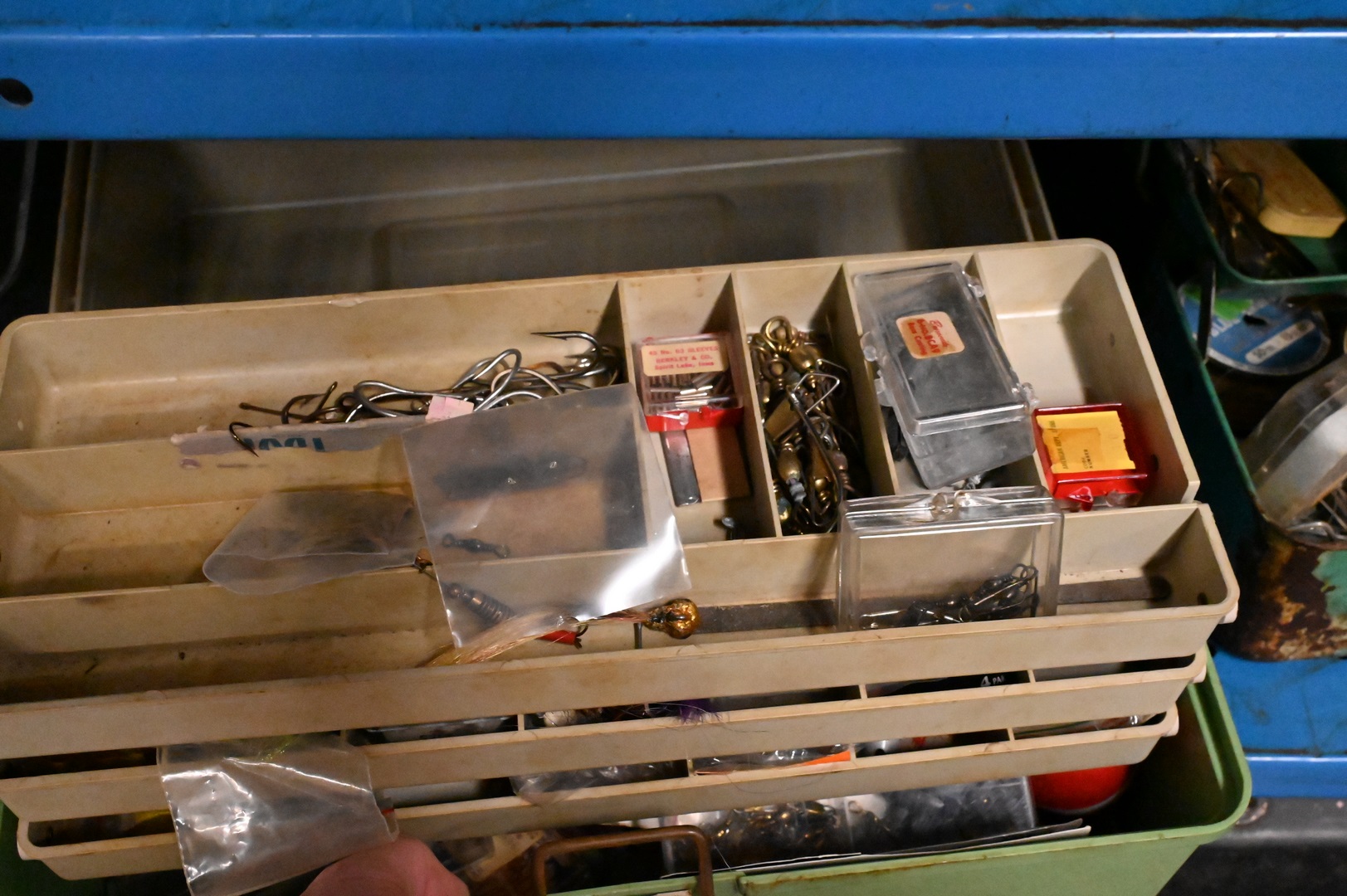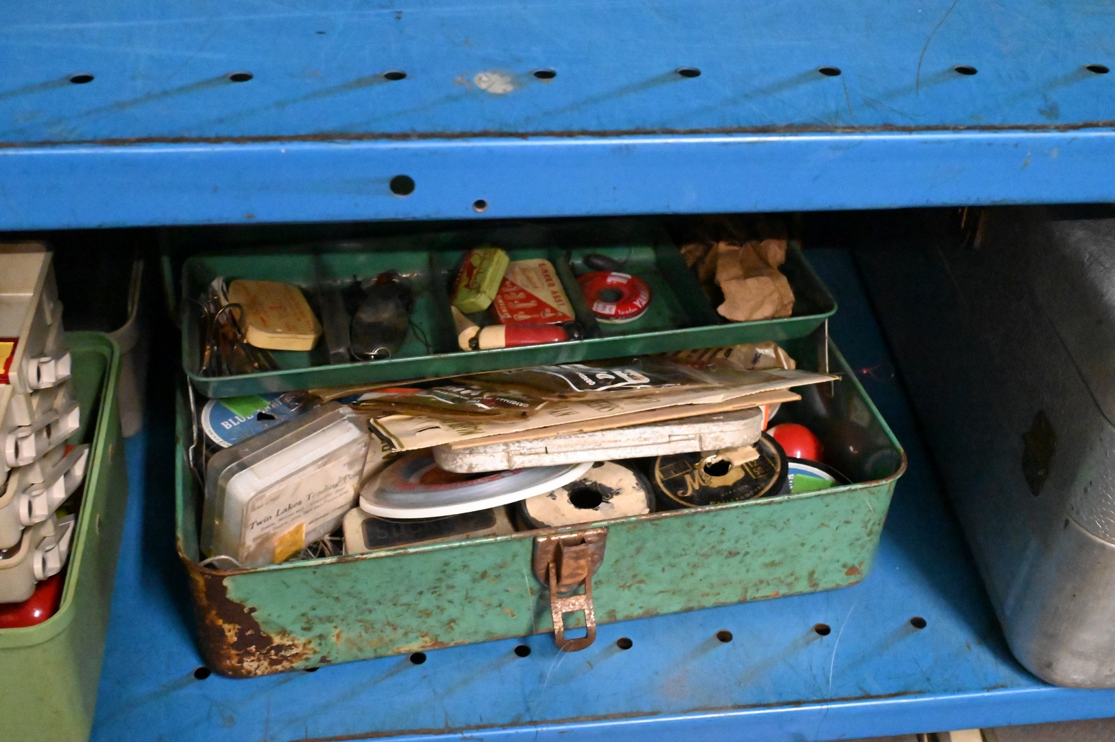 Five Tackle Boxes, to include various and assorted fishing items. Provenance: Estate of Peter Tillou, Litchfield, Connecticut.