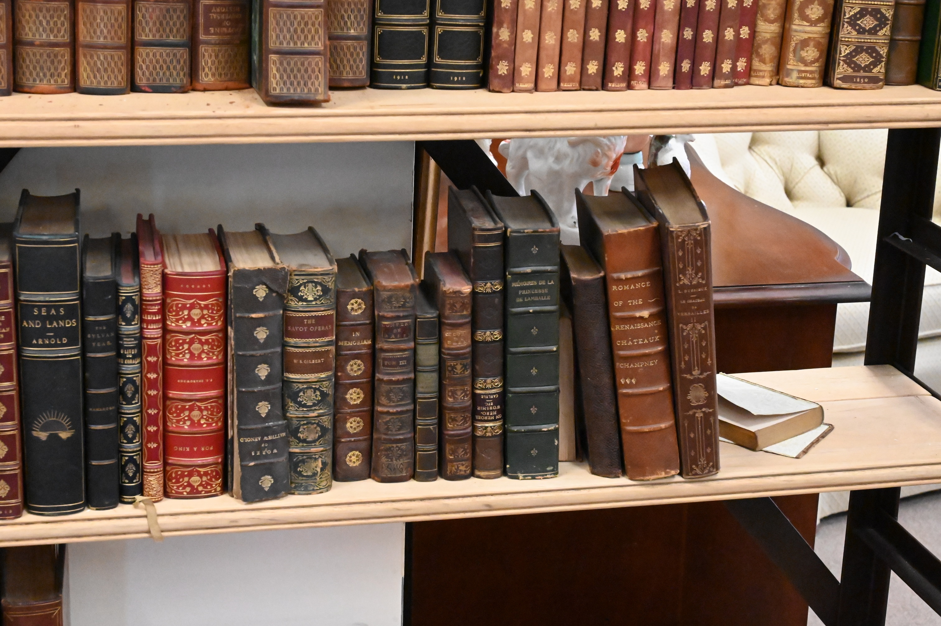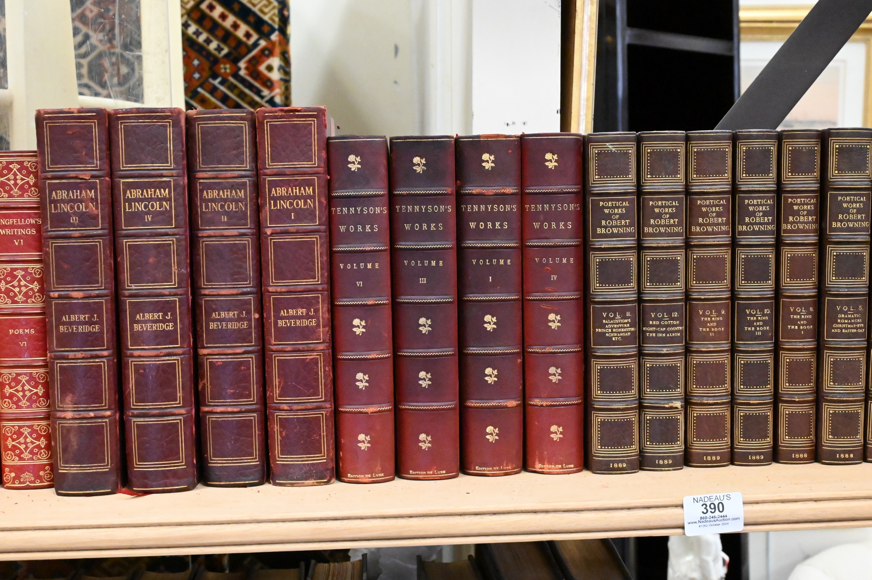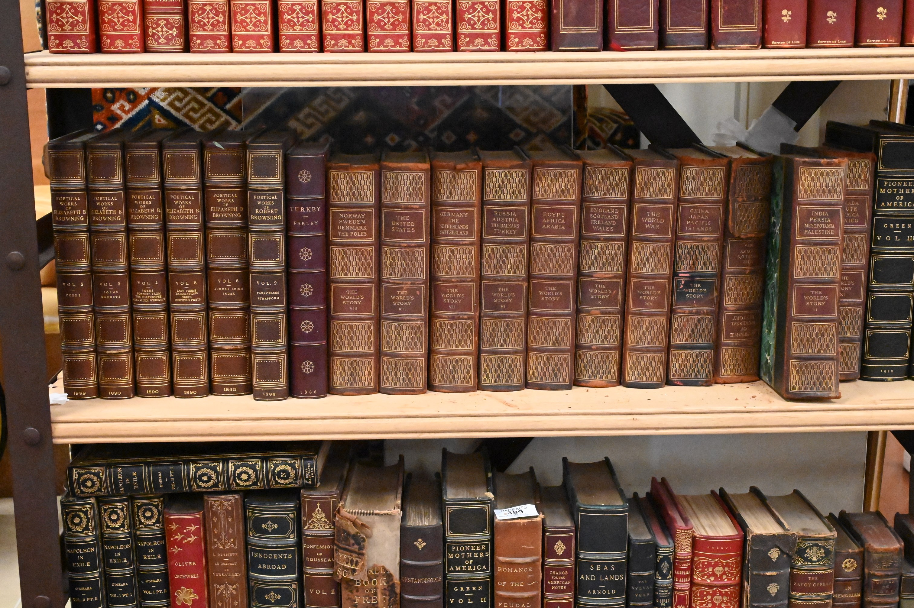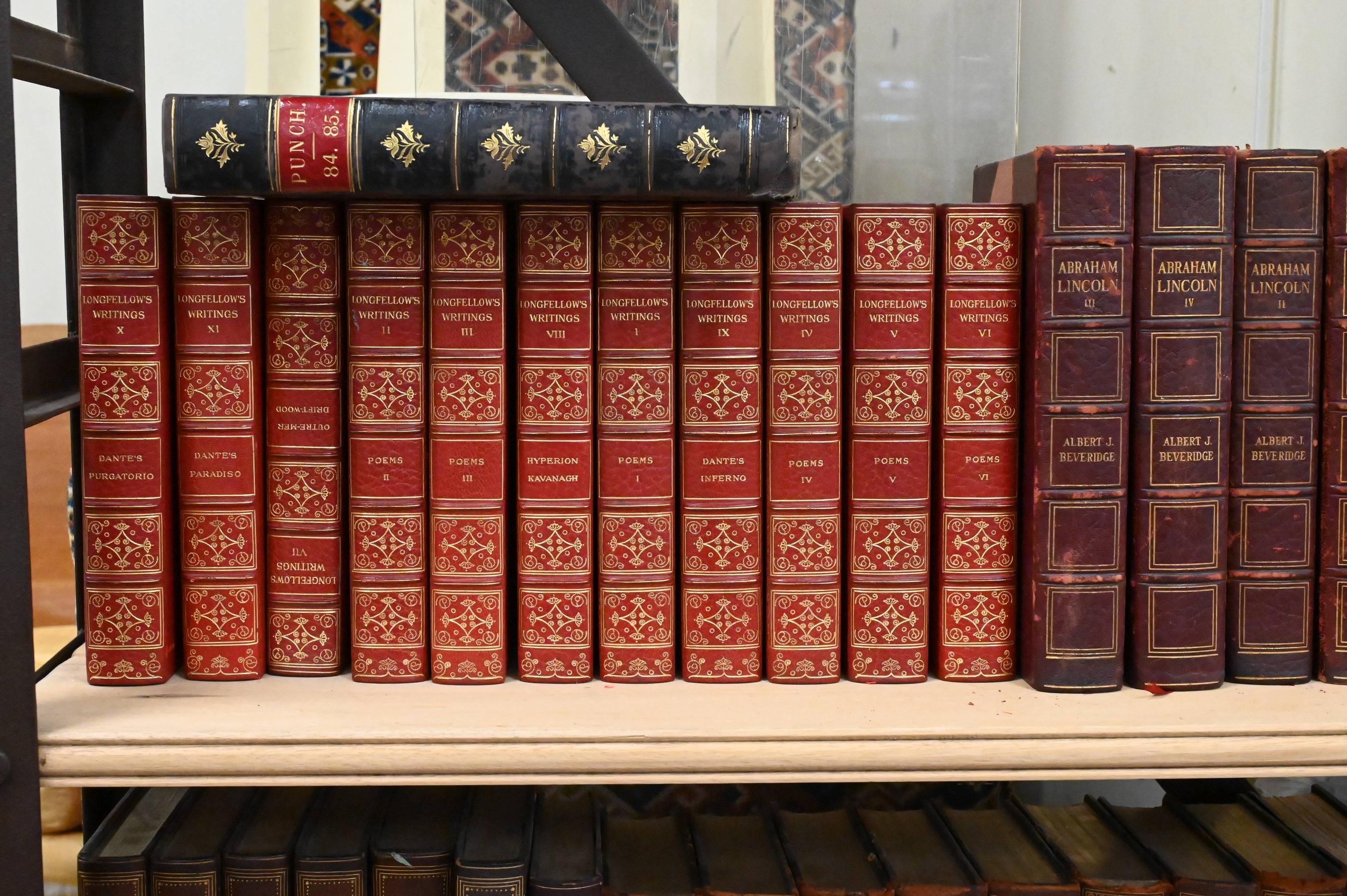 10 volumes of Edgar Allan Poe, Longfellow’s Writings 11 volumes, The World’s Story 11 volumes, 10 volumes the Poetical Works of Robert Browning, etcetera