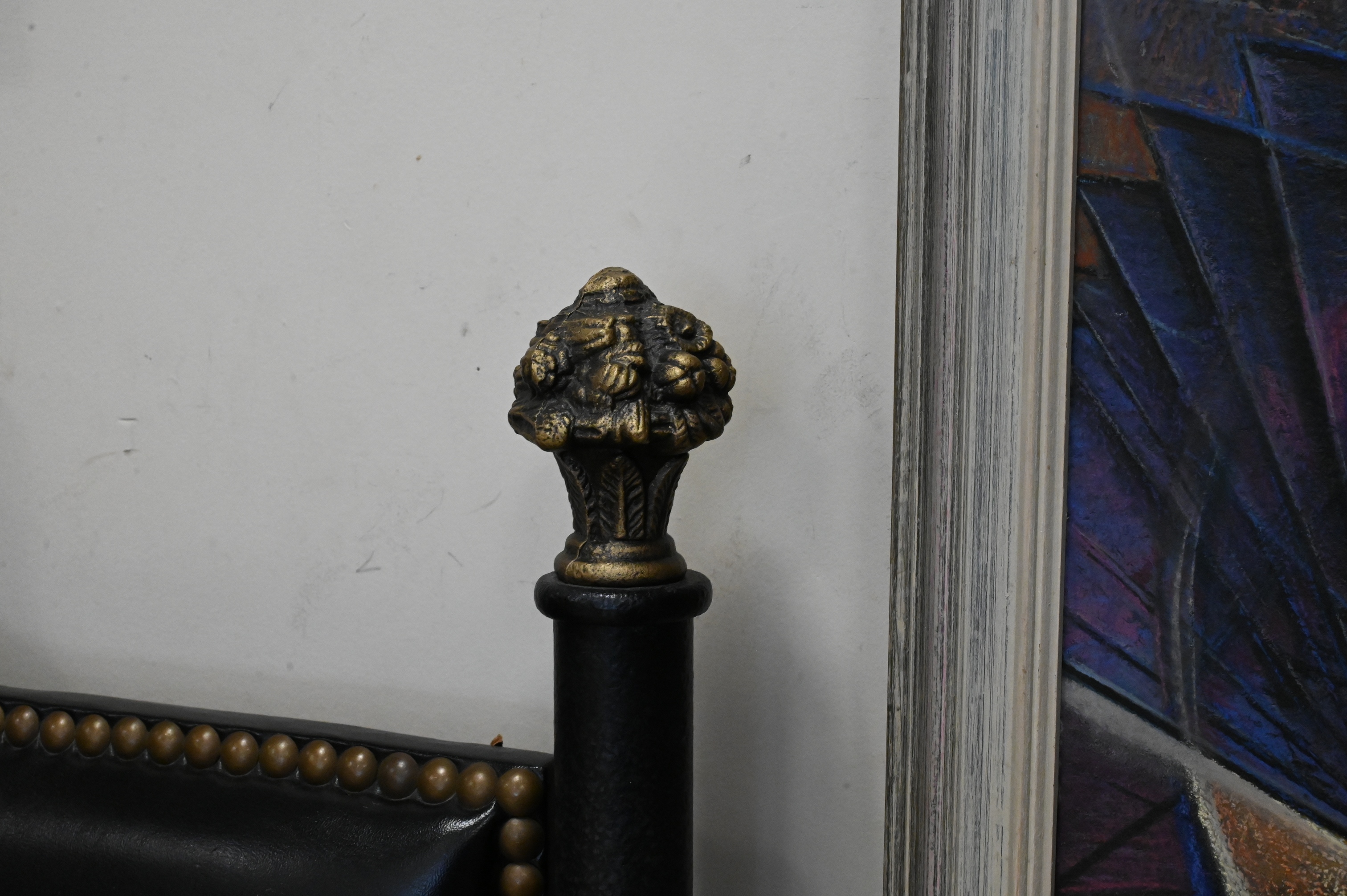 having leather headboard and hollywood frame base