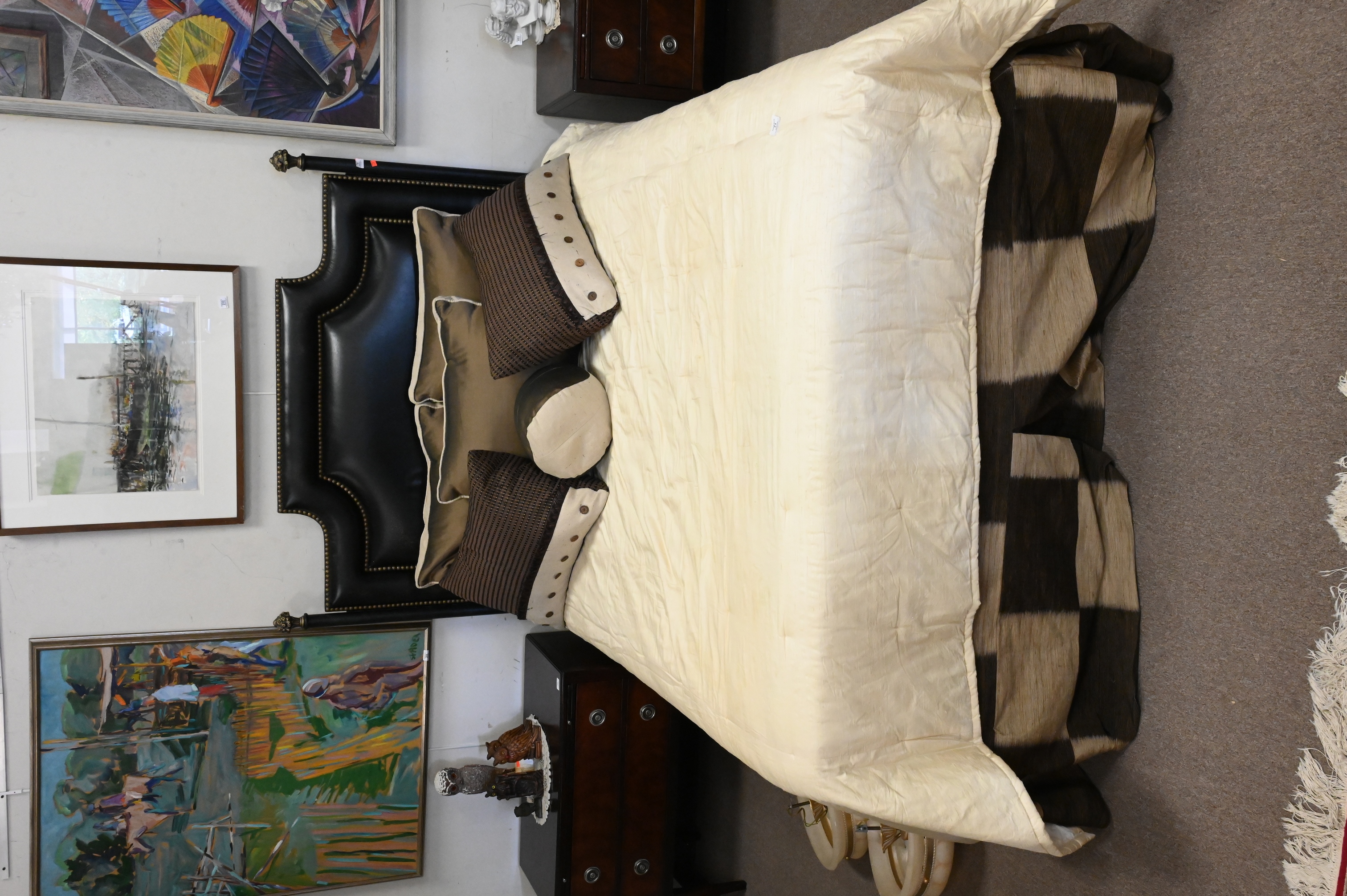 Lot 389: Leather Upholstered Queen Sized Bed