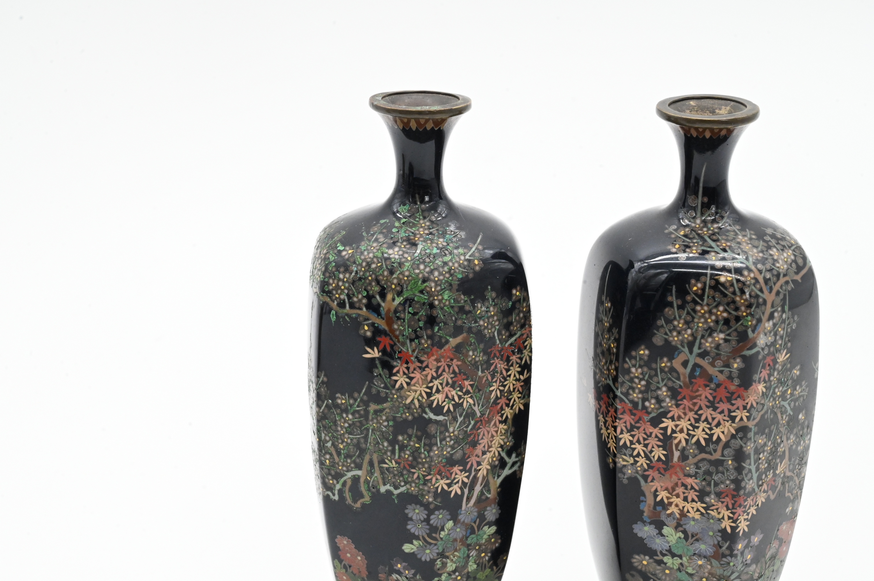 Pair of Japanese Fine Wire Cloisonne Vases
