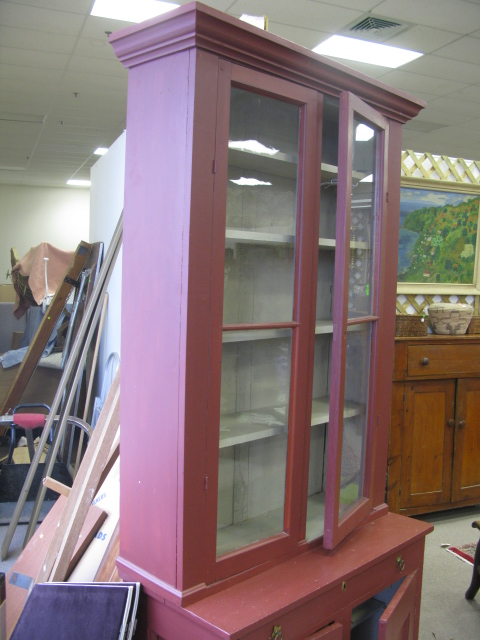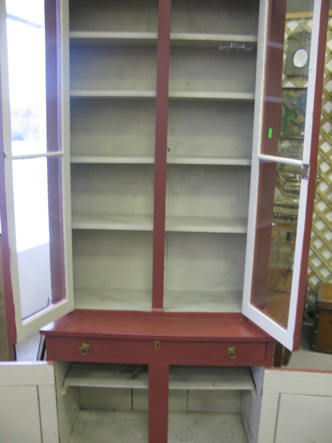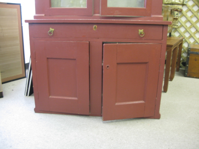 Primitive style cupboard two glass doors and two wooden doors
