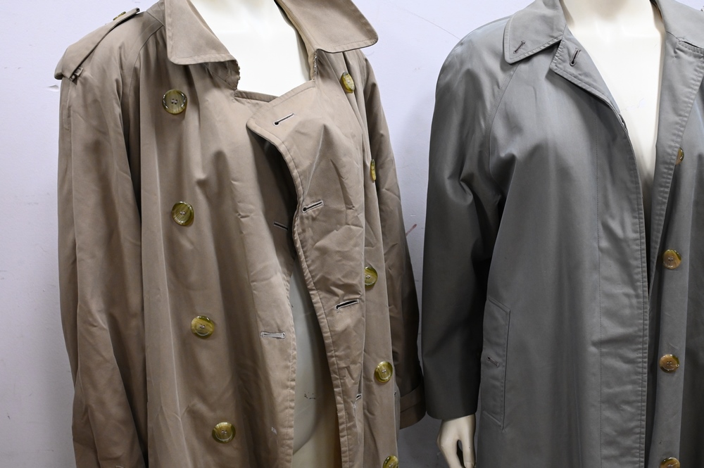 Two Burberry Trench Coats, one 3/4 length and the other full length.