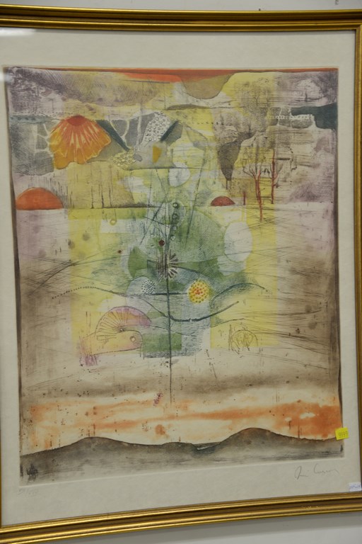Lot 389: Two colored lithographs including Paul Fentins 1969 256/300 and a Jim Curry. 37 x 27 and 23 1/2 x 19