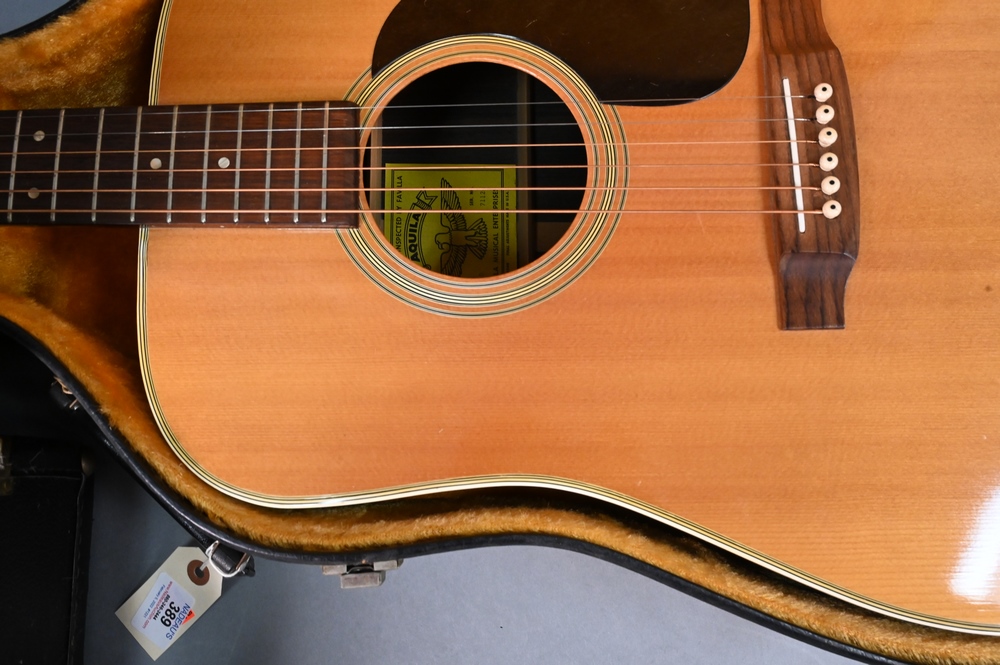 Lot 389: Two Piece Lot, to include Foville Aquila 5-150 Acoustic Guitar, circa 1970s, having rosewood sides and back, serial number 71124, along with a Selmer Bach TR-200 trumpet, in original case, serial number 584492.