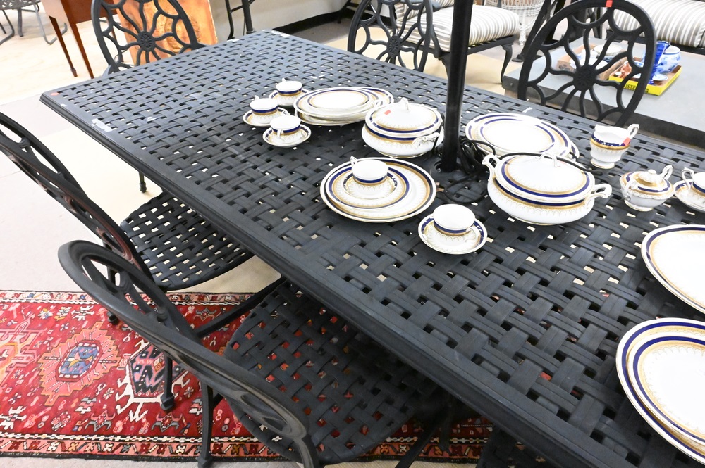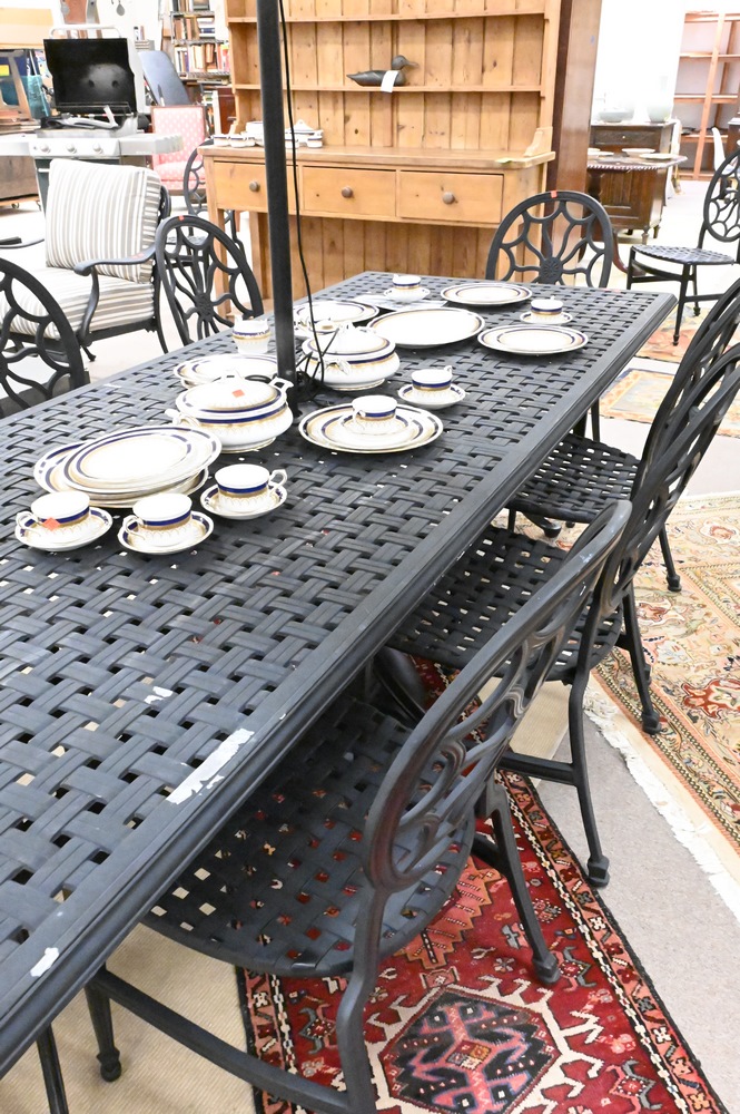 12 Piece Summer Home Classics Outdoor Aluminum Dining Set, to include 10 “Sheridan” chairs, along with a “double lattice” dining table, retail over $12,000, table top 42″ x 110″.