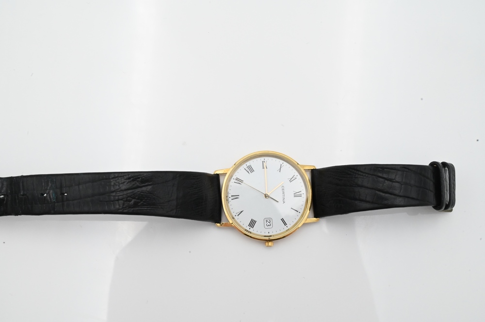 Certina Gold Men’s Wristwatch, having sapphire crystal, 33 millimeters.